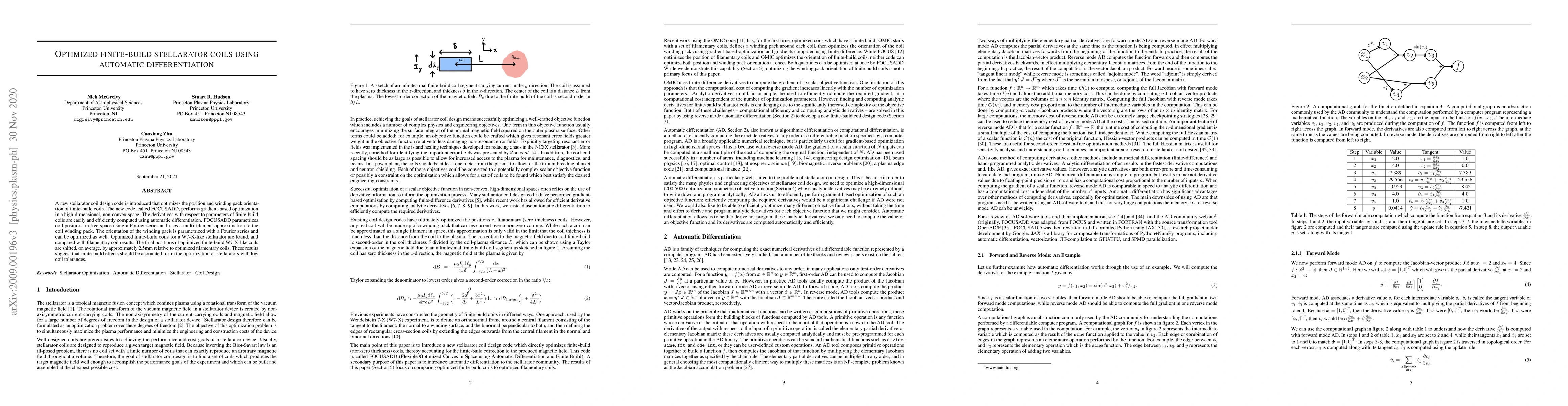 The FOCUSADD code optimizes the design of finite-build stellarator coils using automatic differentiation for efficient gradient-based optimization, finding optimized coil positions that differ by about 2.5mm from filamentary coil results, indicating the importance of accounting for finite-build effects in low-tolerance stellarator designs.