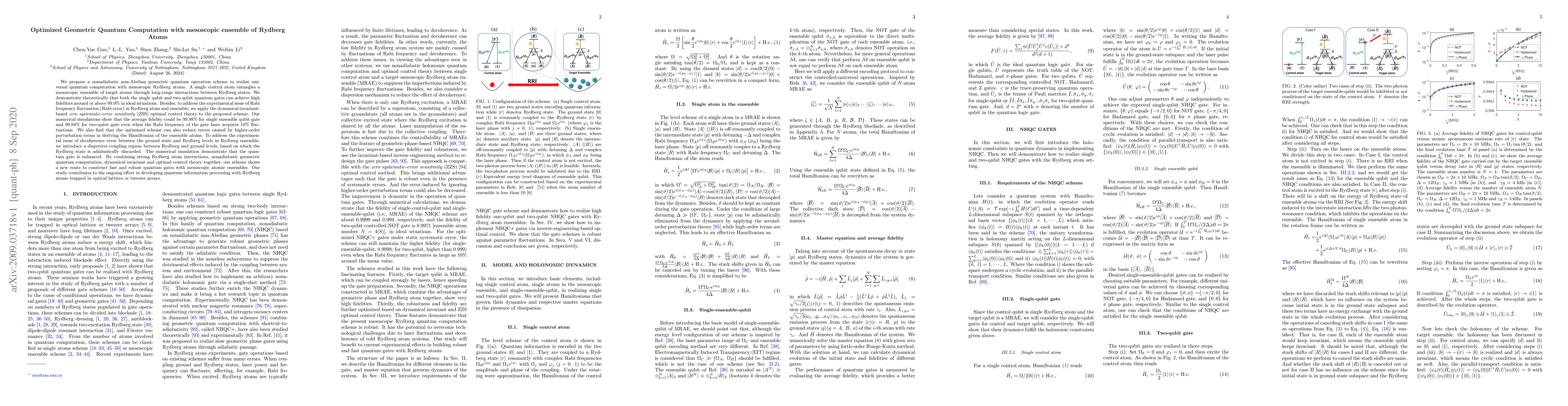 This paper proposes a scheme for optimized geometric quantum computation using a mesoscopic ensemble of Rydberg atoms, leveraging nonadiabatic non-Abelian geometric operations and optimal control theory to achieve high fidelity quantum gates despite experimental errors like Rabi frequency fluctuations and decoherence, achieving average fidelities above 99.98%.