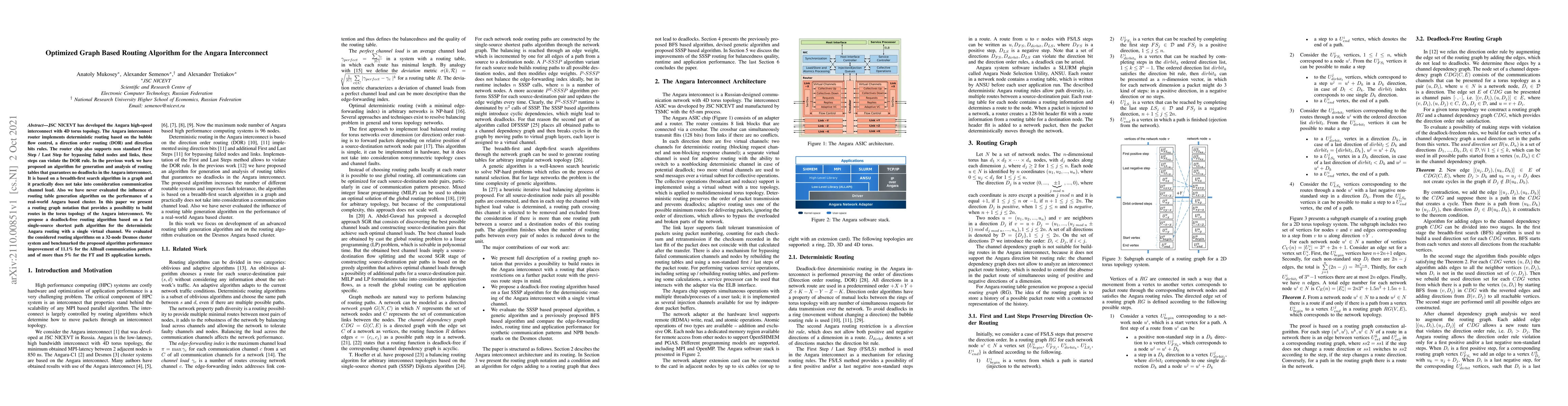 This paper presents an optimized routing algorithm for the Angara high-speed interconnect using a graph-based approach that ensures deadlock-free routing and improves performance by 11.1% for Alltoall communication and over 5% for FT and IS applications, compared to previous methods. The new algorithm leverages a fast single-source shortest path algorithm for deterministic routing.