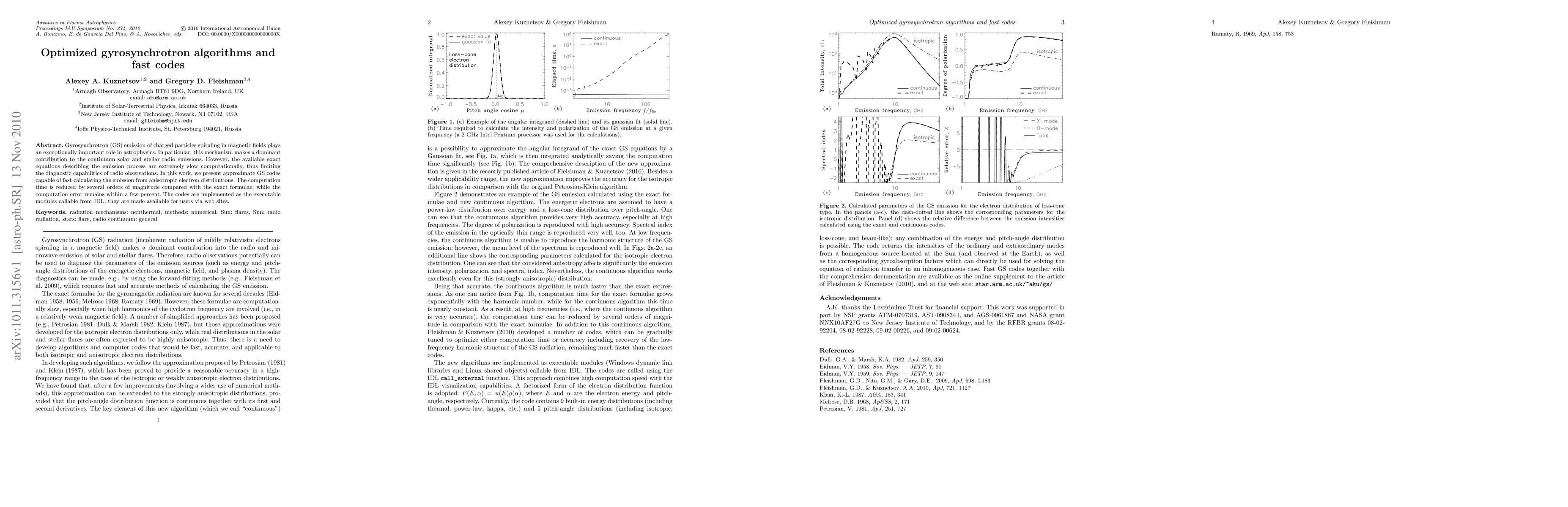 Gyrosynchrotron (GS) emission of charged particles spiraling in magnetic fields plays an exceptionally important role in astrophysics. In particular, this mechanism makes a dominant contribution to the continuum solar and stellar radio emissions. However, the available exact equations describing the emission process are extremely slow computationally, thus limiting the diagnostic capabilities of radio observations. In this work, we present approximate GS codes capable of fast calculating the emission from anisotropic electron distributions. The computation time is reduced by several orders of magnitude compared with the exact formulae, while the computation error remains within a few percent. The codes are implemented as the executable modules callable from IDL; they are made available for users via web sites.