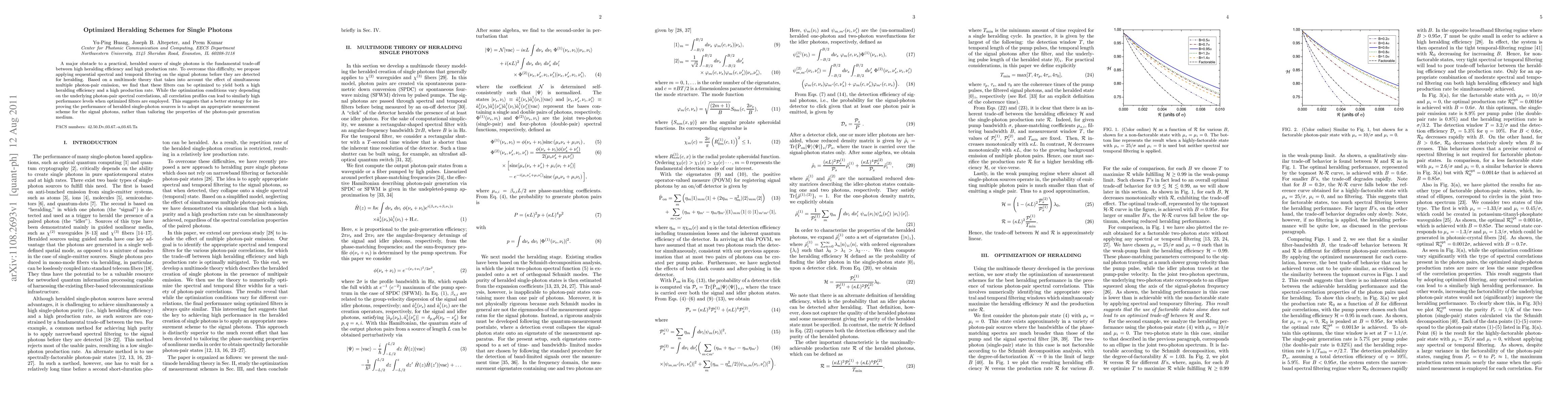 Researchers propose using spectral and temporal filtering to optimize heralding schemes for single photons, achieving high efficiency and production rates while minimizing correlation profile variation.