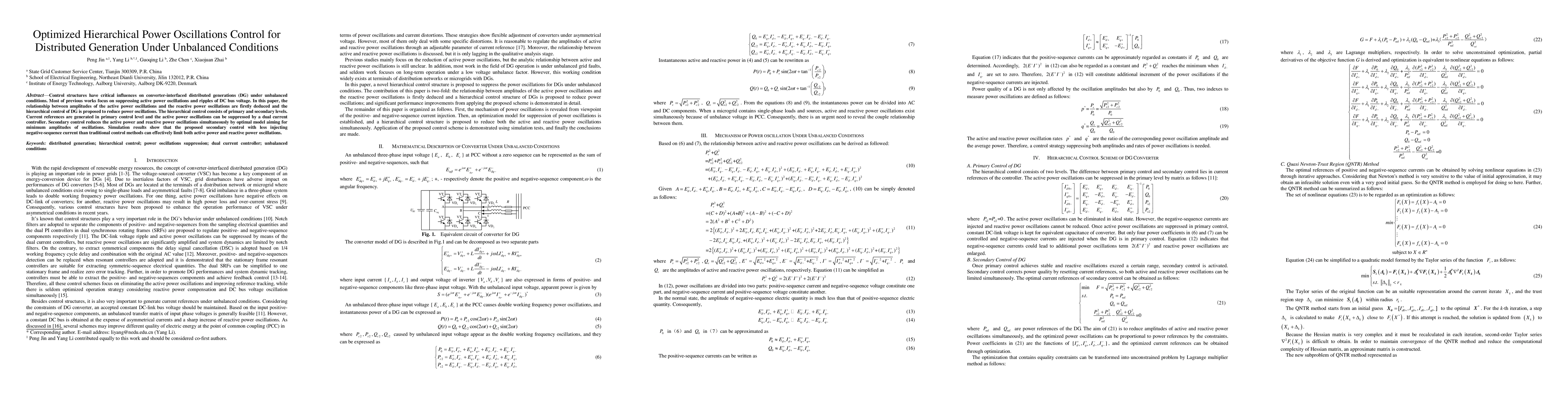 This paper proposes a hierarchical control structure for converter-interfaced distributed generation under unbalanced conditions, focusing on reducing active and reactive power oscillations. The control includes a primary level generating current references and a secondary level optimizing to minimize oscillation amplitudes, achieving better performance than traditional methods.