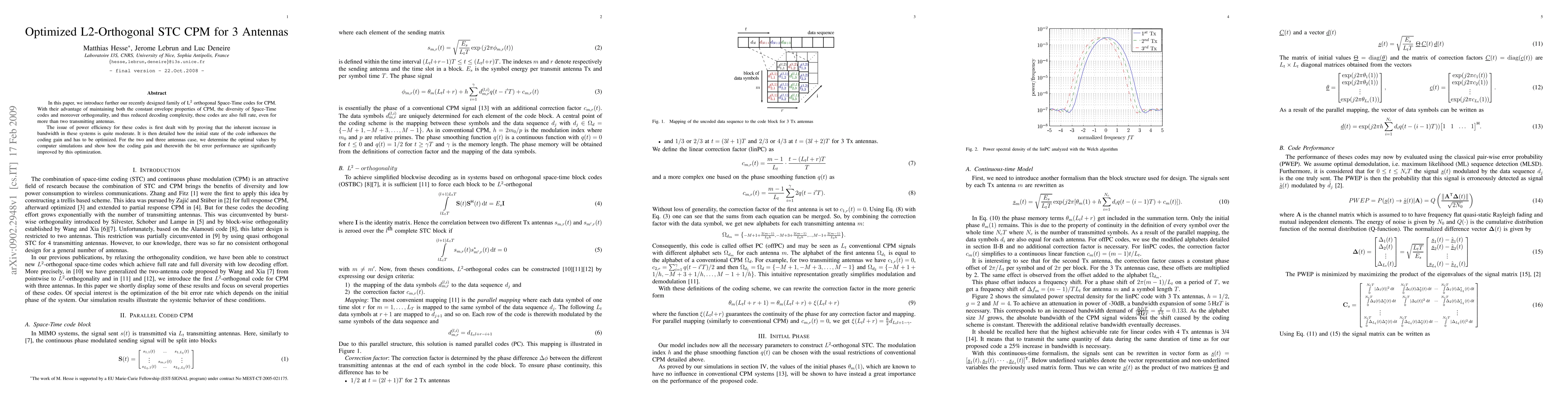 This paper optimizes L2 orthogonal Space-Time codes for Continuous Phase Modulation (CPM) to maintain constant envelope properties, diversity, and orthogonality while reducing decoding complexity. The authors determine optimal initial states for two and three antennas through simulations, significantly improving coding gain and bit error performance.