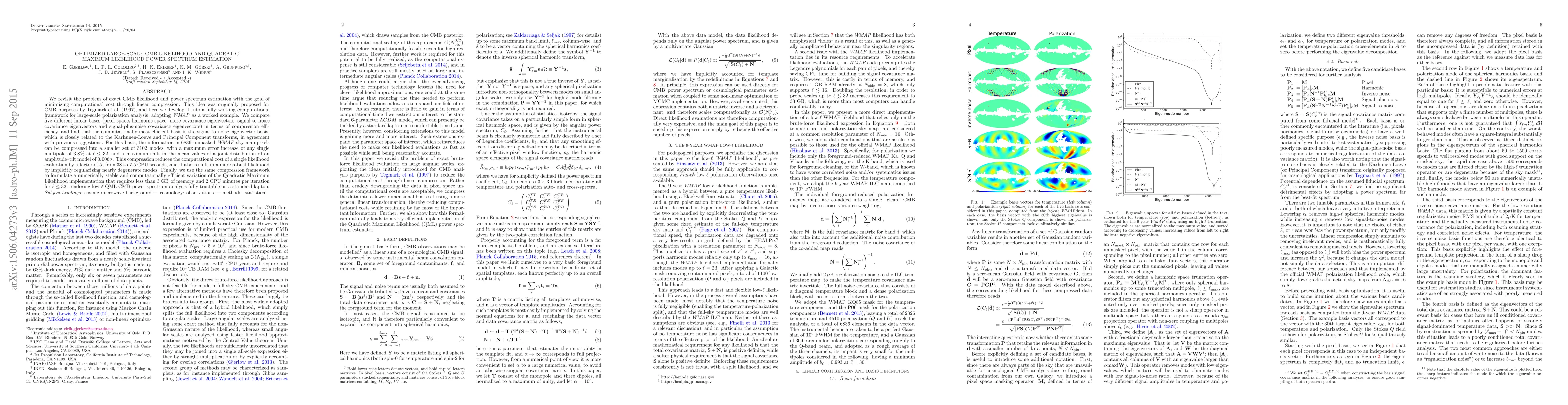 This paper optimizes the computational cost of large-scale CMB likelihood and power spectrum estimation through linear compression, finding that the signal-to-noise eigenvector basis is the most efficient. The method reduces the computational time for a single likelihood evaluation by a factor of 5 and enables a numerically stable Quadratic Maximum Likelihood implementation on standard laptops.