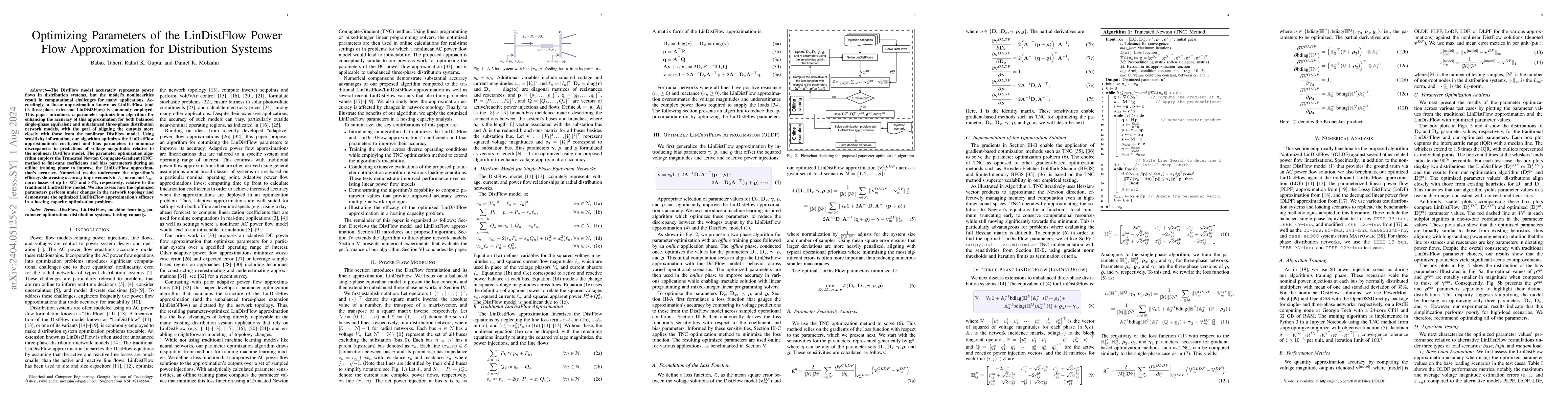 The DistFlow model accurately represents power flows in distribution systems, but the model's nonlinearities result in computational challenges for many optimization applications. Accordingly, a linear approximation known as LinDistFlow is commonly employed. This paper introduces an algorithm for enhancing the accuracy of the LinDistFlow approximation, with the goal of aligning the outputs more closely with those from the nonlinear DistFlow model. Using sensitivity information, our algorithm optimizes the LinDistFlow approximation's coefficient and bias parameters to minimize discrepancies in predictions of voltage magnitudes relative to the nonlinear DistFlow model. The algorithm employs the Truncated Newton Conjugate-Gradient (TNC) optimization method to fine-tune coefficients and bias parameters during an offline training phase in order to improve the LinDistFlow approximation's accuracy in optimization applications. This improves the model's effectiveness across various system scenarios, leading to a marked improvement in predictive accuracy. Numerical results underscore the algorithm's efficacy, showcasing accuracy improvements in $L_{1}$-norm and $L_{\infty}$-norm losses of up to $92\%$ and $88\%$, respectively, relative to the traditional LinDistFlow model. We assess how the optimized parameters perform under changes in the network topology and also validate the optimized LinDistFlow approximation's efficacy in a hosting capacity optimization problem.