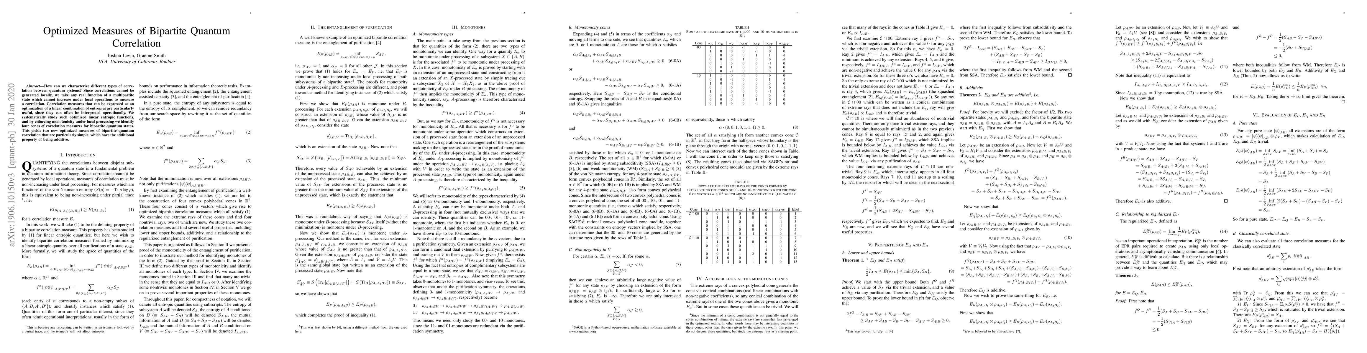 This paper identifies four cones of optimized linear entropic measures for bipartite quantum correlations, leading to the development of two new simple, additive measures that are useful for characterizing quantum correlations. These measures maintain monotonicity under local operations.
