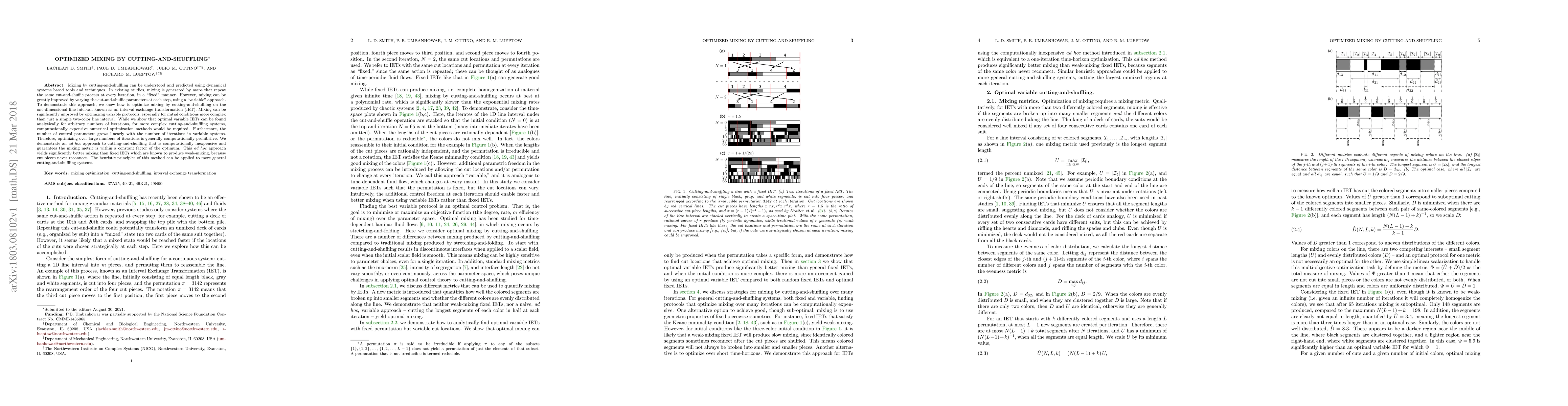 The paper introduces an ad hoc, computationally inexpensive method for optimizing mixing in cutting-and-shuffling systems, significantly improving upon fixed IETs, and provides a framework for analyzing and predicting mixing using dynamical systems tools.
