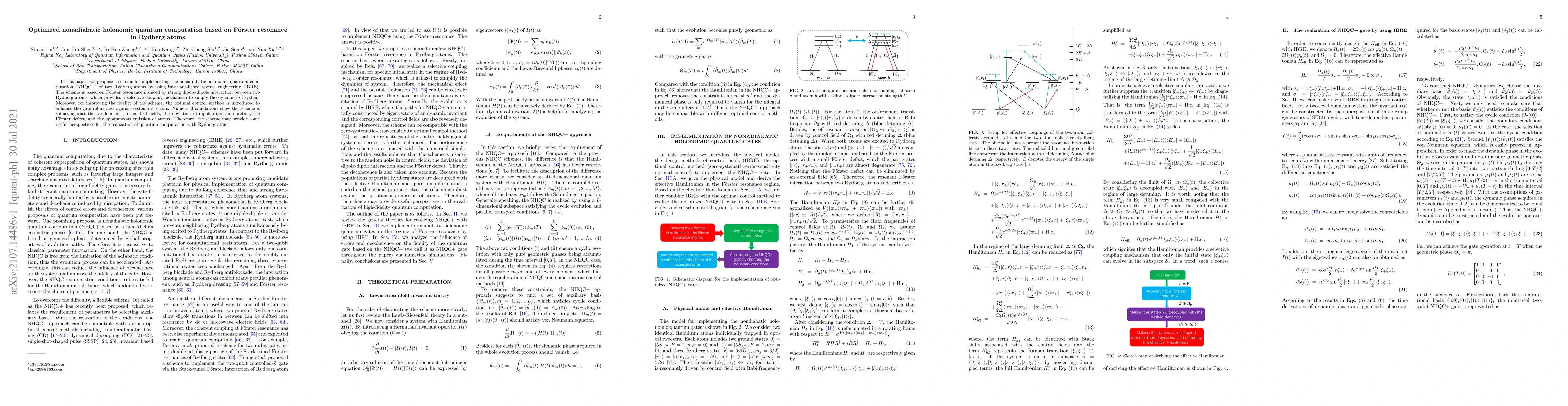 In this paper, we propose a scheme for implementing the nonadiabatic holonomic quantum computation (NHQC+) of two Rydberg atoms by using invariant-based reverse engineering (IBRE). The scheme is based on F\"orster resonance induced by strong dipole-dipole interaction between two Rydberg atoms, which provides a selective coupling mechanism to simply the dynamics of system. Moreover, for improving the fidelity of the scheme, the optimal control method is introduced to enhance the gate robustness against systematic errors. Numerical simulations show the scheme is robust against the random noise in control fields, the deviation of dipole-dipole interaction, the F\"orster defect, and the spontaneous emission of atoms. Therefore, the scheme may provide some useful perspectives for the realization of quantum computation with Rydberg atoms.