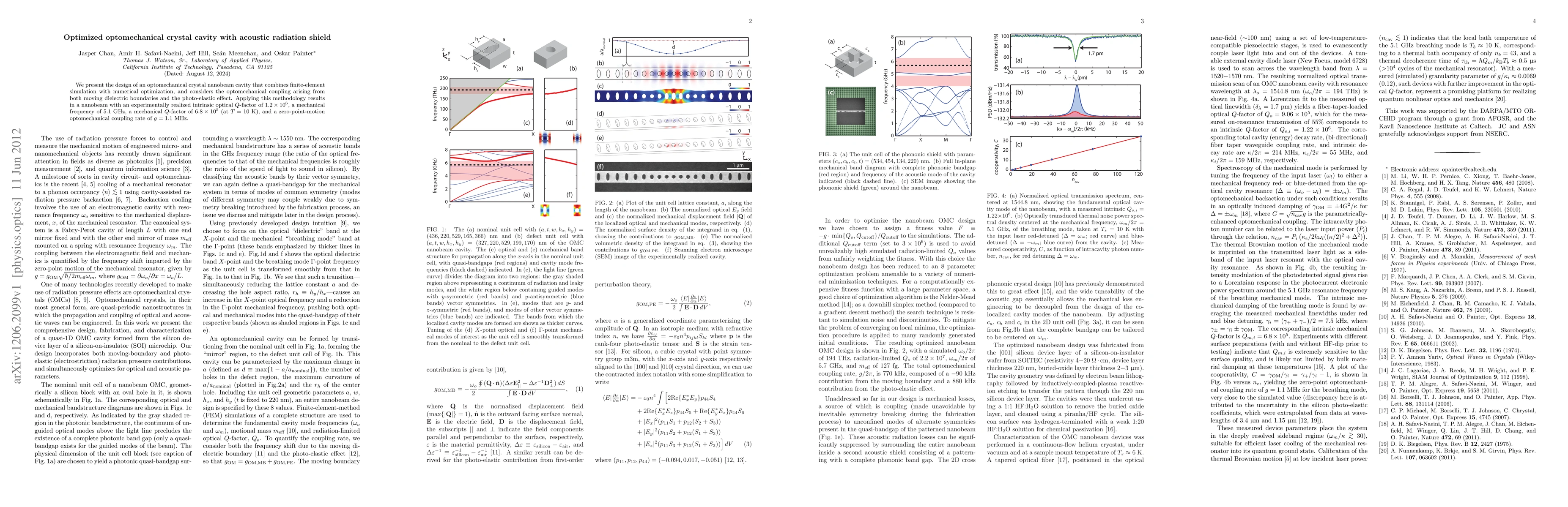 This paper details the design of an optomechanical crystal nanobeam cavity optimized through simulation and numerical optimization, achieving high optical and mechanical Q-factors, and demonstrating significant optomechanical coupling. The optimized cavity exhibits an intrinsic optical Q-factor of 1.2x10^6 and a mechanical Q-factor of 6.8x10^5 at 10K.
