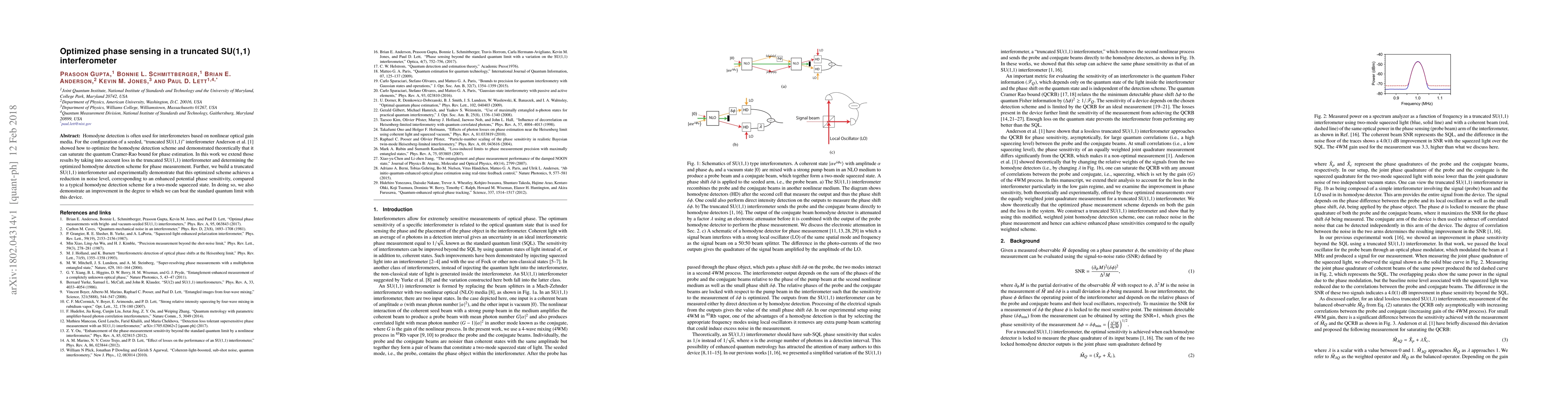 This paper optimizes homodyne detection in a truncated SU(1,1) interferometer, showing theoretically and experimentally that it can surpass the quantum Cramer-Rao bound for phase estimation, and achieves a lower noise level and better phase sensitivity compared to standard schemes.