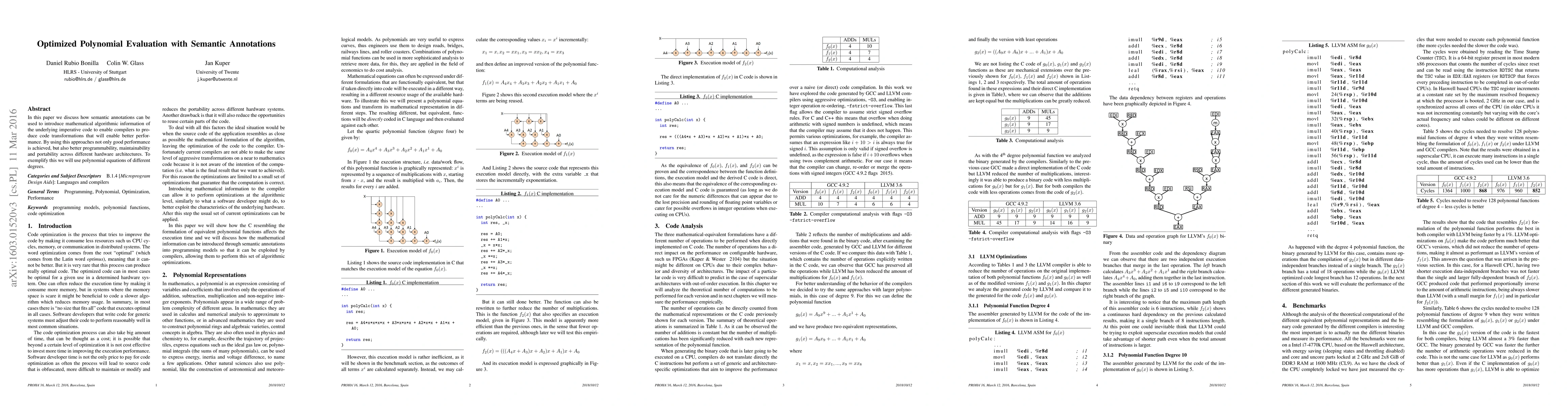 In this paper we discuss how semantic annotations can be used to introduce mathematical algorithmic information of the underlying imperative code to enable compilers to produce code transformations that will enable better performance. By using this approaches not only good performance is achieved, but also better programmability, maintainability and portability across different hardware architectures. To exemplify this we will use polynomial equations of different degrees.