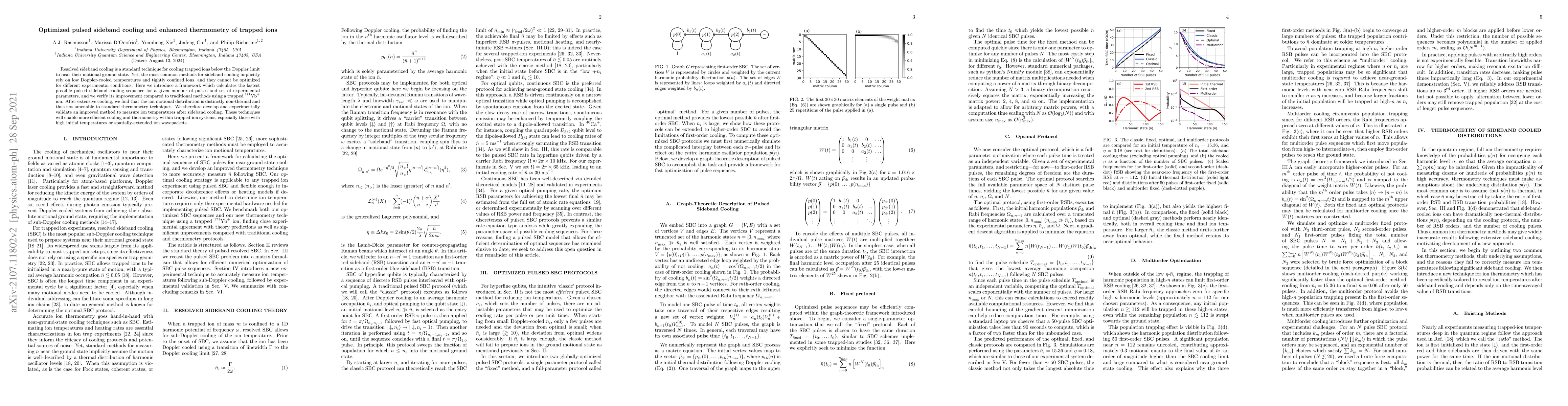 This paper presents an optimized framework for pulsed sideband cooling of trapped ions, achieving faster cooling than traditional methods. It also introduces an enhanced thermometry technique to measure non-thermal ion motional distributions post-cooling, improving efficiency in systems with high initial temperatures or extended ion wavepackets.
