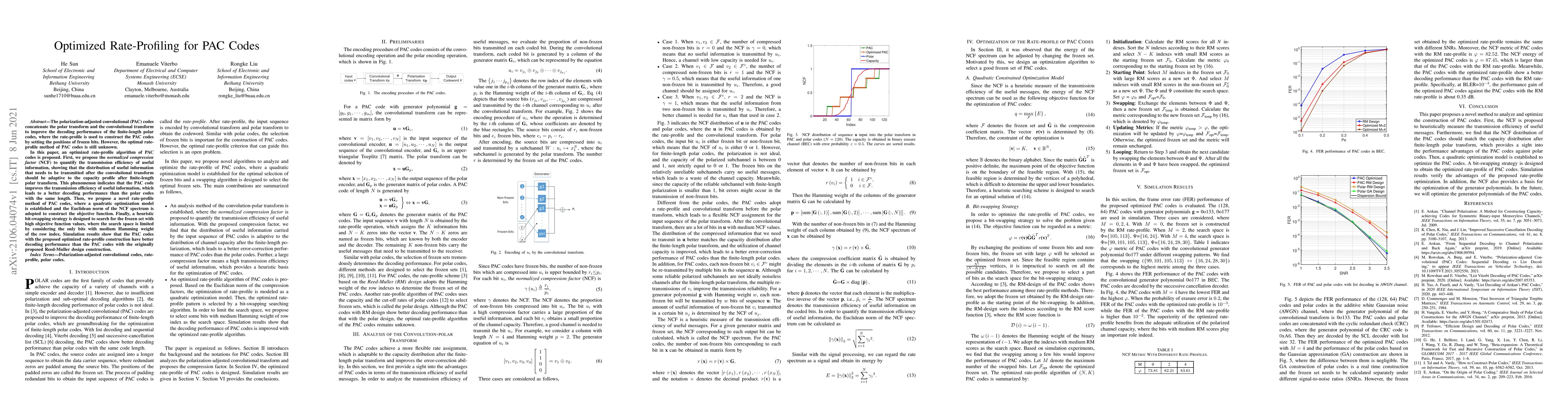 Researchers propose a new method for optimizing rate-profiles in Polar-Adjusted Convolutional (PAC) codes, which improves decoding performance and transmission efficiency.