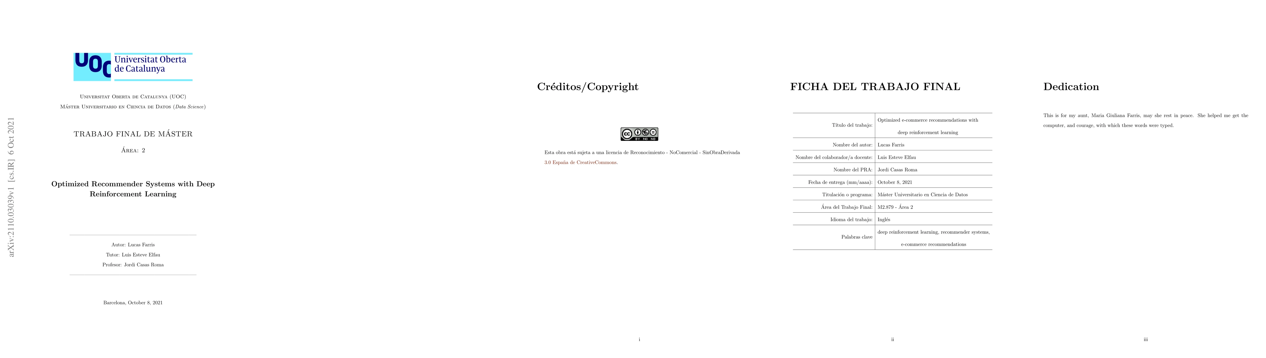 This paper explores the application of deep reinforcement learning to optimize recommender systems, proposing a reproducible testbed to evaluate advanced algorithms against traditional methods, and presents results highlighting the potential of reinforcement learning in generating meaningful recommendations.