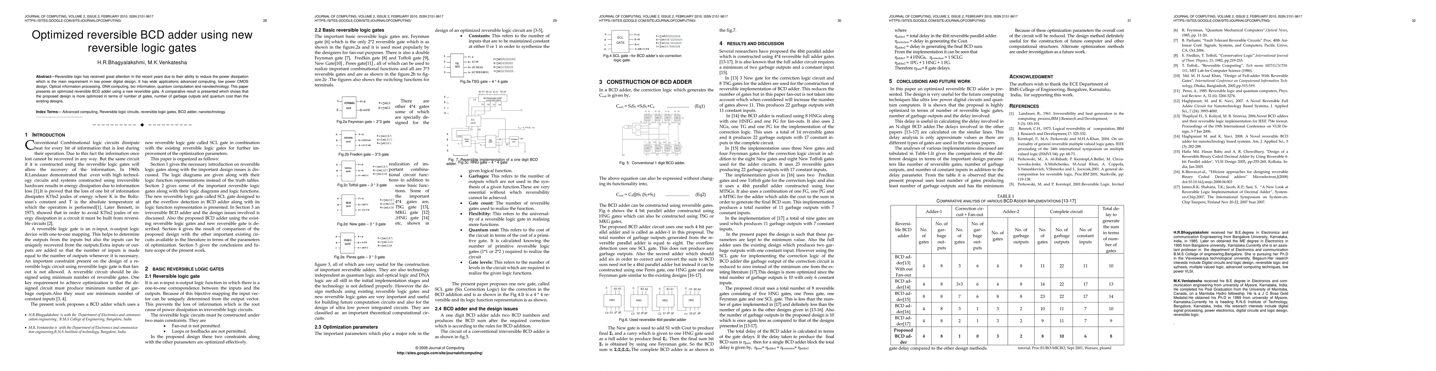 This paper introduces an optimized reversible BCD adder utilizing a novel reversible gate, demonstrating superior performance in terms of gate count, garbage outputs, and quantum cost compared to existing designs. The focus on reversible logic aims to significantly reduce power dissipation in low power digital systems.