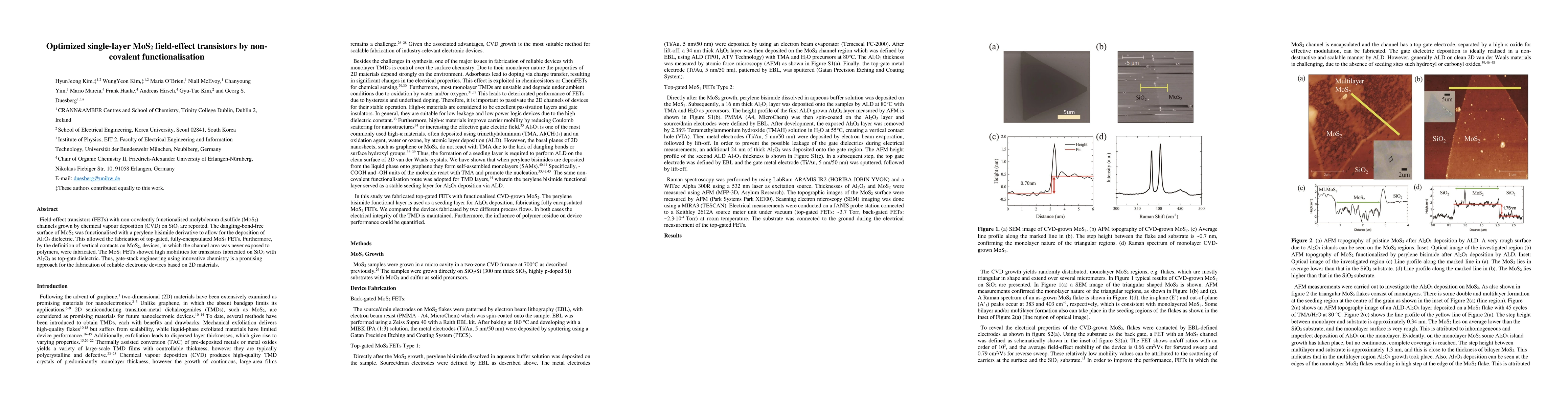 This paper reports on the fabrication of high-performance single-layer MoS2 field-effect transistors using non-covalent functionalisation and Al2O3 dielectric, achieving high mobilities and demonstrating the potential of gate-stack engineering for 2D material-based devices.