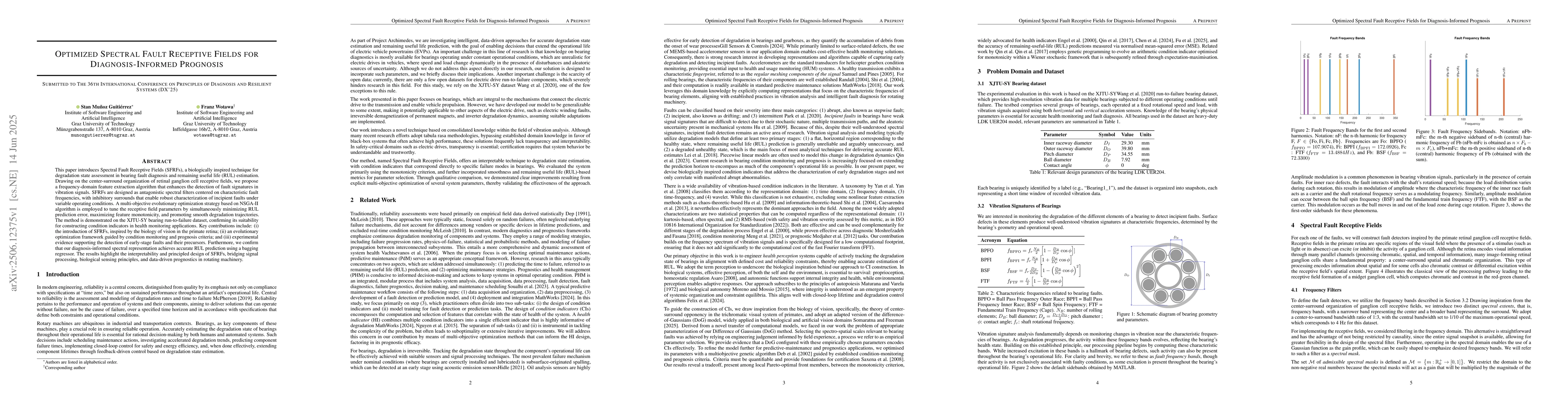 The development of spectral fault receptive fields as a novel approach for bearing health management and prognostics.