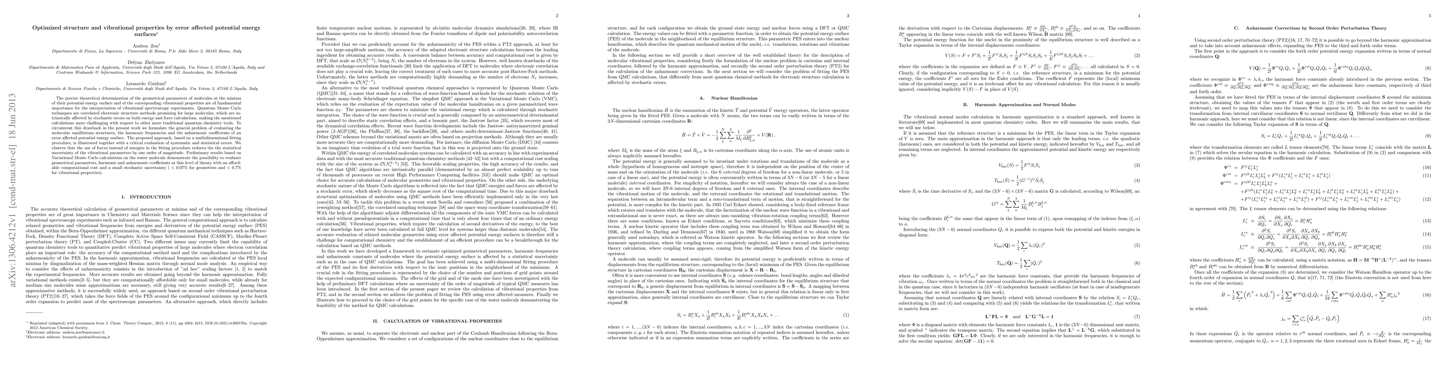 This paper proposes a multidimensional fitting procedure to determine molecular equilibrium structures and vibrational properties from error-affected potential energy surfaces using quantum Monte Carlo techniques. The approach reduces statistical uncertainty by employing forces instead of energies, achieving small uncertainties in geometrical and vibrational parameters for the water molecule.