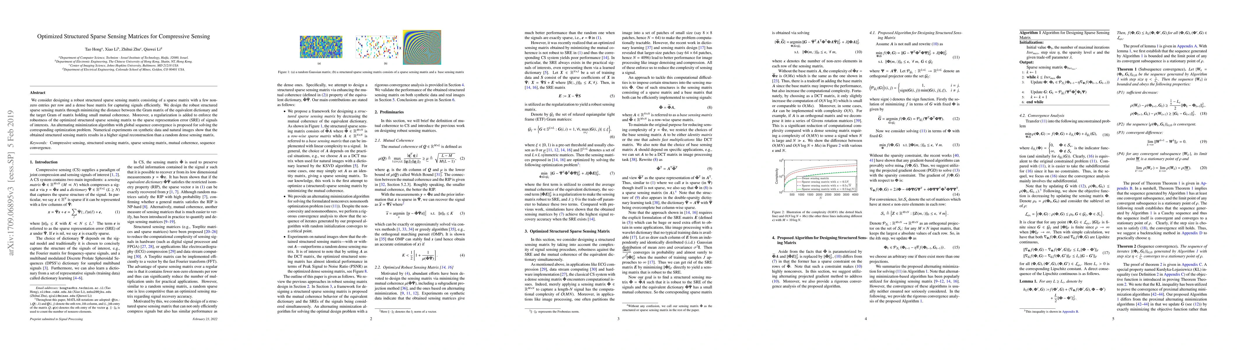 This paper proposes an optimized structured sparse sensing matrix for compressive sensing, designed to minimize mutual coherence and incorporate robustness against sparse representation error. An alternating minimization algorithm is developed to solve the optimization problem, demonstrating superior signal reconstruction performance compared to random dense matrices in experiments.