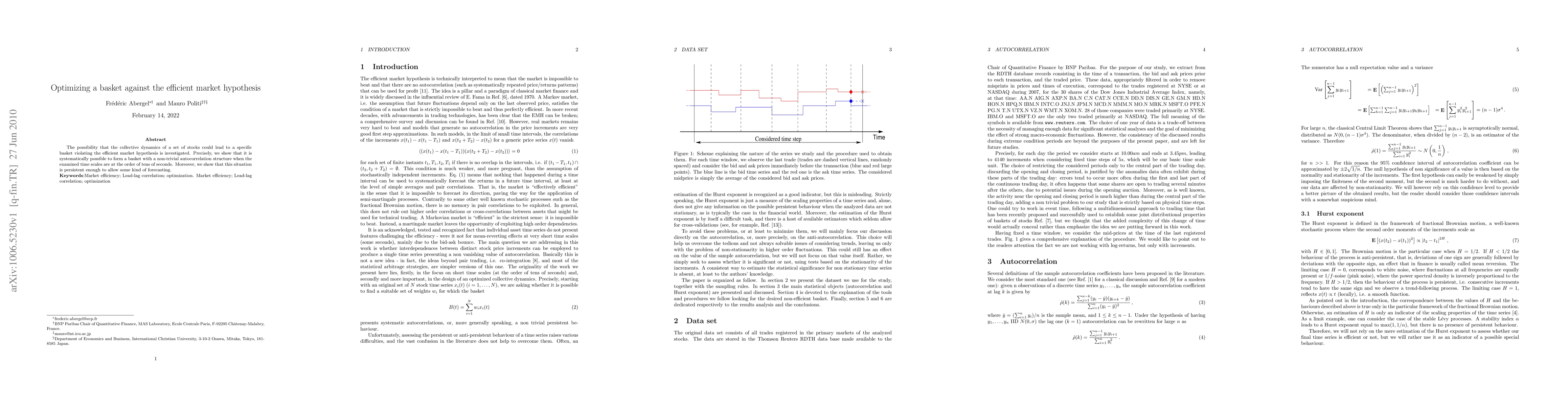 The possibility that the collective dynamics of a set of stocks could lead to a specific basket violating the efficient market hypothesis is investigated. Precisely, we show that it is systematically possible to form a basket with a non-trivial autocorrelation structure when the examined time scales are at the order of tens of seconds. Moreover, we show that this situation is persistent enough to allow some kind of forecasting.