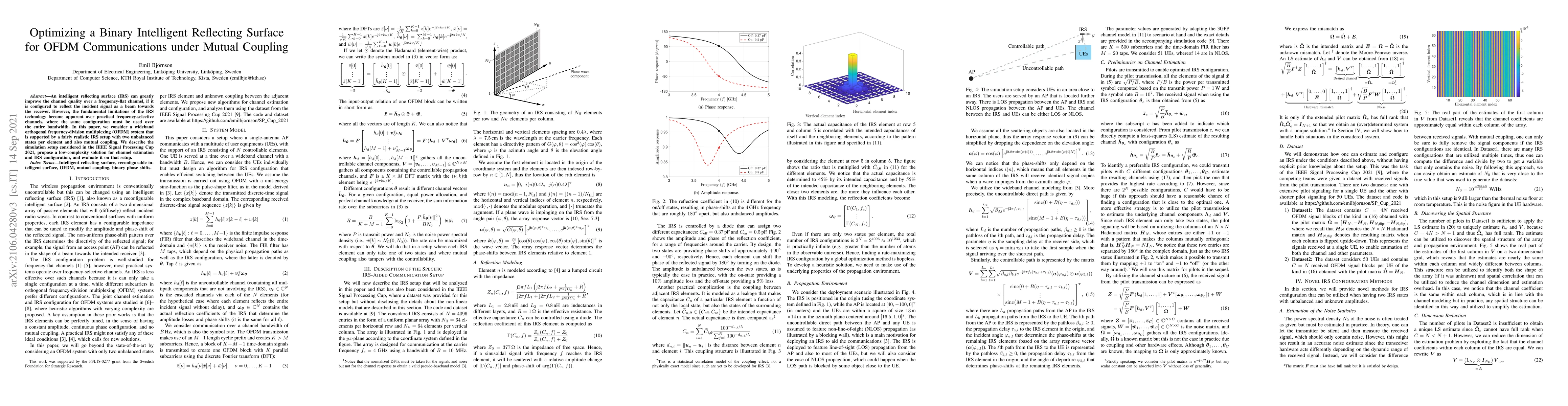 An intelligent reflecting surface (IRS) can greatly improve the channel quality over a frequency-flat channel, if it is configured to reflect the incident signal as a beam towards the receiver. However, the fundamental limitations of the IRS technology become apparent over practical frequency-selective channels, where the same configuration must be used over the entire bandwidth. In this paper, we consider a wideband orthogonal frequency-division multiplexing (OFDM) system that is supported by a fairly realistic IRS setup with two unbalanced states per element and also mutual coupling. We describe the simulation setup considered in the IEEE Signal Processing Cup 2021, propose a low-complexity solution for channel estimation and IRS configuration, and evaluate it on that setup.