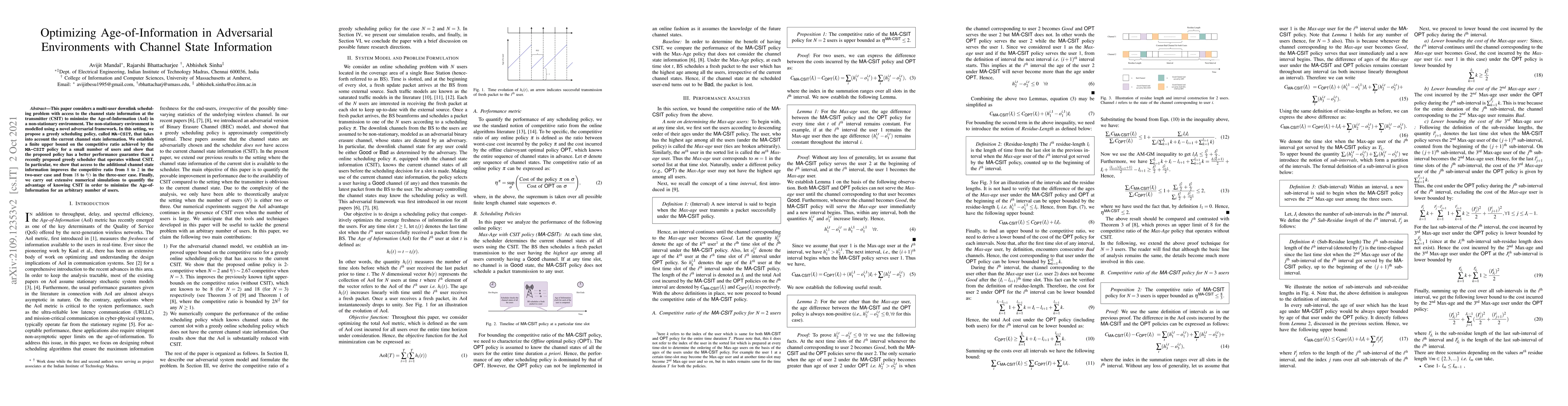 This paper proposes a greedy scheduling policy, MA-CSIT, to minimize Age-of-Information in a multi-user downlink setting with non-stationary adversarial channel conditions. The policy leverages channel state information to outperform a baseline scheduler, achieving better competitive ratios for small user groups.