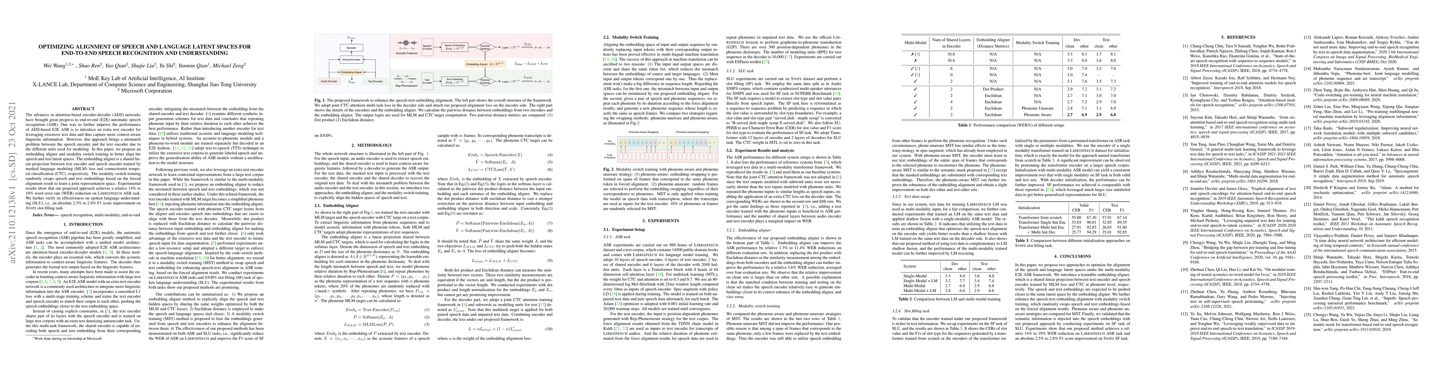 The advances in attention-based encoder-decoder (AED) networks have brought great progress to end-to-end (E2E) automatic speech recognition (ASR). One way to further improve the performance of AED-based E2E ASR is to introduce an extra text encoder for leveraging extensive text data and thus capture more context-aware linguistic information. However, this approach brings a mismatch problem between the speech encoder and the text encoder due to the different units used for modeling. In this paper, we propose an embedding aligner and modality switch training to better align the speech and text latent spaces. The embedding aligner is a shared linear projection between text encoder and speech encoder trained by masked language modeling (MLM) loss and connectionist temporal classification (CTC), respectively. The modality switch training randomly swaps speech and text embeddings based on the forced alignment result to learn a joint representation space. Experimental results show that our proposed approach achieves a relative 14% to 19% word error rate (WER) reduction on Librispeech ASR task. We further verify its effectiveness on spoken language understanding (SLU), i.e., an absolute 2.5% to 2.8% F1 score improvement on SNIPS slot filling task.