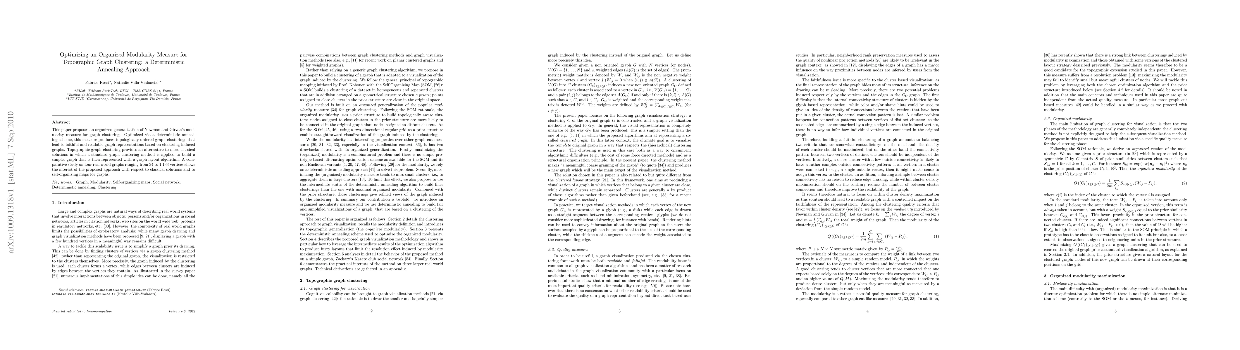A new organized modularity quality measure for graph clustering inspired by topographic mapping was proposed