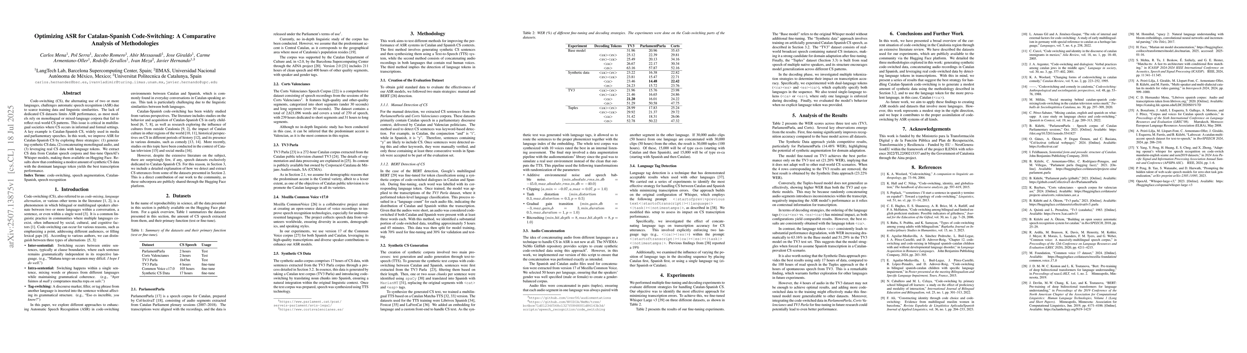 Code-switching (CS), the alternating use of two or more languages, challenges automatic speech recognition (ASR) due to scarce training data and linguistic similarities. The lack of dedicated CS datasets limits ASR performance, as most models rely on monolingual or mixed-language corpora that fail to reflect real-world CS patterns. This issue is critical in multilingual societies where CS occurs in informal and formal settings. A key example is Catalan-Spanish CS, widely used in media and parliamentary speeches. In this work, we improve ASR for Catalan-Spanish CS by exploring three strategies: (1) generating synthetic CS data, (2) concatenating monolingual audio, and (3) leveraging real CS data with language tokens. We extract CS data from Catalan speech corpora and fine-tune OpenAI's Whisper models, making them available on Hugging Face. Results show that combining a modest amount of synthetic CS data with the dominant language token yields the best transcription performance.