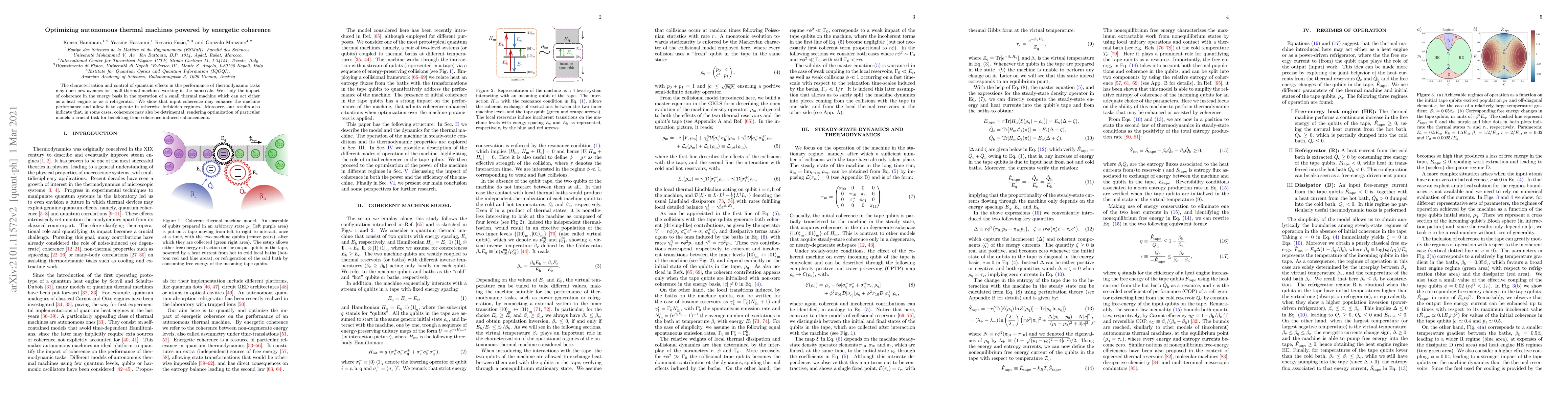 This paper investigates how quantum coherence can optimize the performance of small thermal machines operating at the nanoscale, showing that coherence can enhance machine efficiency or, conversely, may impair it, emphasizing the need for tailored optimization strategies.