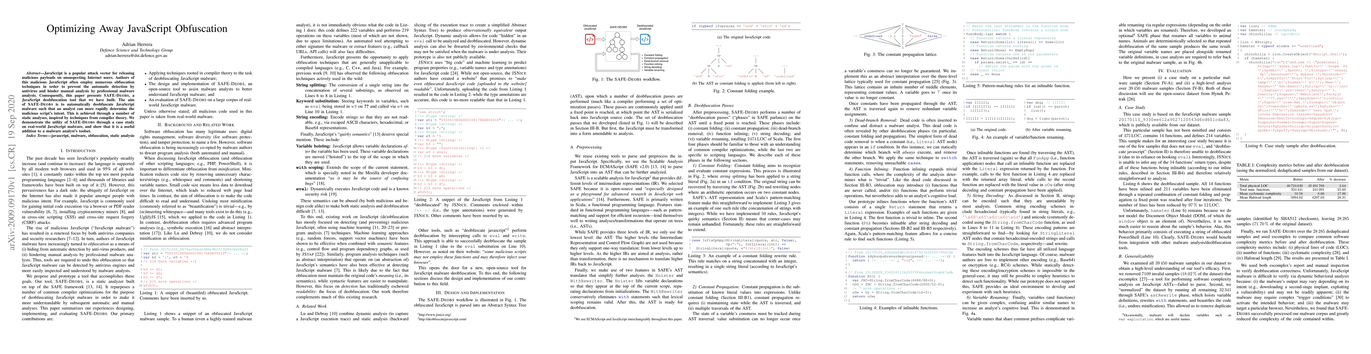 This paper introduces SAFE-Deobs, a tool designed to automatically deobfuscate JavaScript malware, aiding analysts in quickly identifying malicious intent. The tool employs static analysis techniques inspired by compiler theory, demonstrated through a case study on real-world malware samples.