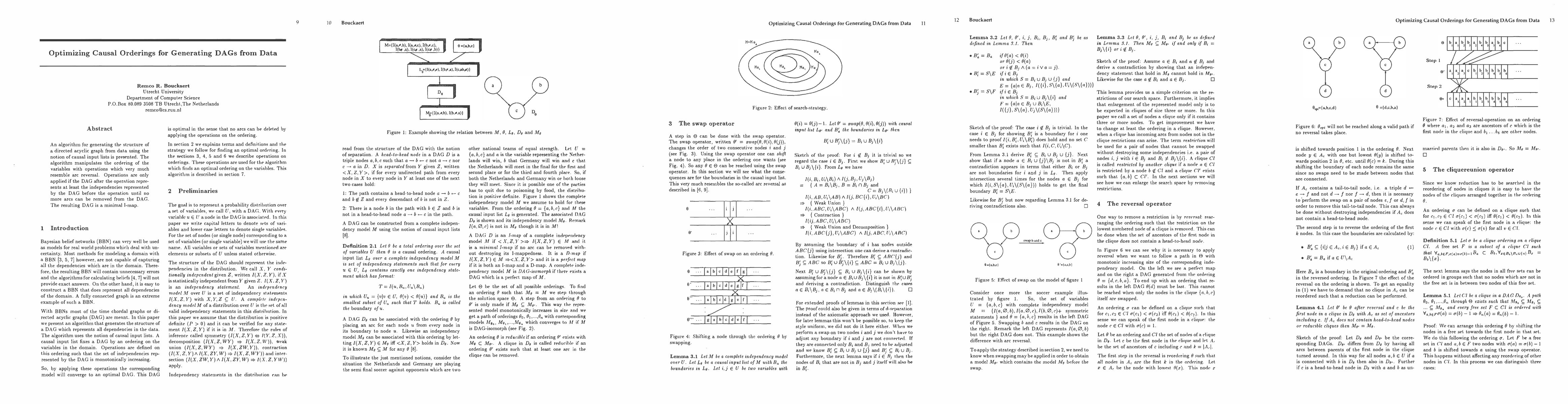 An algorithm for generating the structure of a directed acyclic graph from data using the notion of causal input lists is presented. The algorithm manipulates the ordering of the variables with operations which very much resemble arc reversal. Operations are only applied if the DAG after the operation represents at least the independencies represented by the DAG before the operation until no more arcs can be removed from the DAG. The resulting DAG is a minimal l-map.