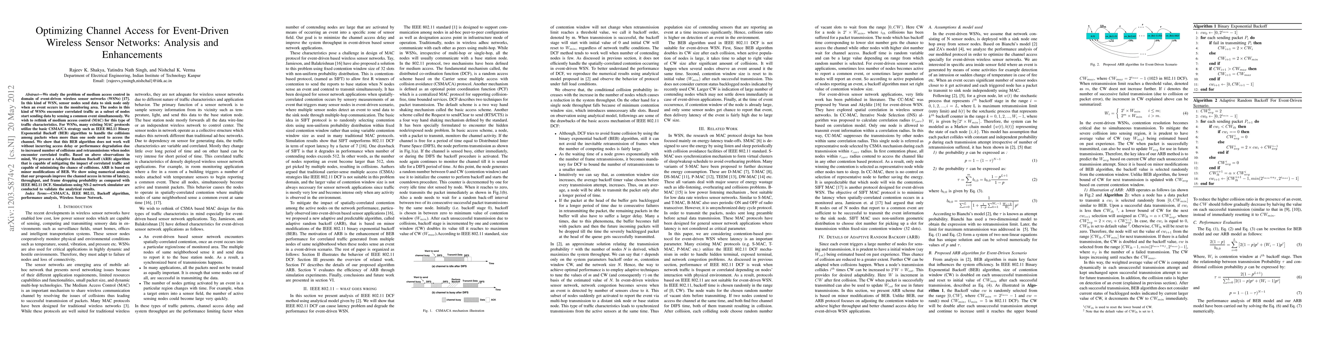 We study the problem of medium access control in domain of event-driven wireless sensor networks (WSNs). In this kind of WSN, sensor nodes send data to sink node only when an event occurs in the monitoring area. The nodes in this kind of WSNs encounter correlated traffic as a subset of nodes start sending data by sensing a common event simultaneously. We wish to rethink of medium access control (MAC) for this type of traffic characteristics. For WSNs, many existing MAC protocols utilize the basic CSMA/CA strategy such as IEEE 802.11 Binary Exponential Backoff (BEB) algorithm to handle the collisions among packets when more than one node need to access the channel. We show that this BEB algorithm does not work well without incurring access delay or performance degradation due to increased number of collisions and retransmissions when nodes encounter correlated traffic. Based on above observations in mind, We present a Adaptive Random Backoff (ARB) algorithm that is capable of mitigating the impact of correlated traffic and capable of minimizing the chance of collisions. ARB is based on minor modifications of BEB. We show using numerical analysis that our proposals improve the channel access in terms of latency, throughput, and frame dropping probability as compared with IEEE 802.11 DCF. Simulations using NS-2 network simulator are conducted to validate the analytical results.