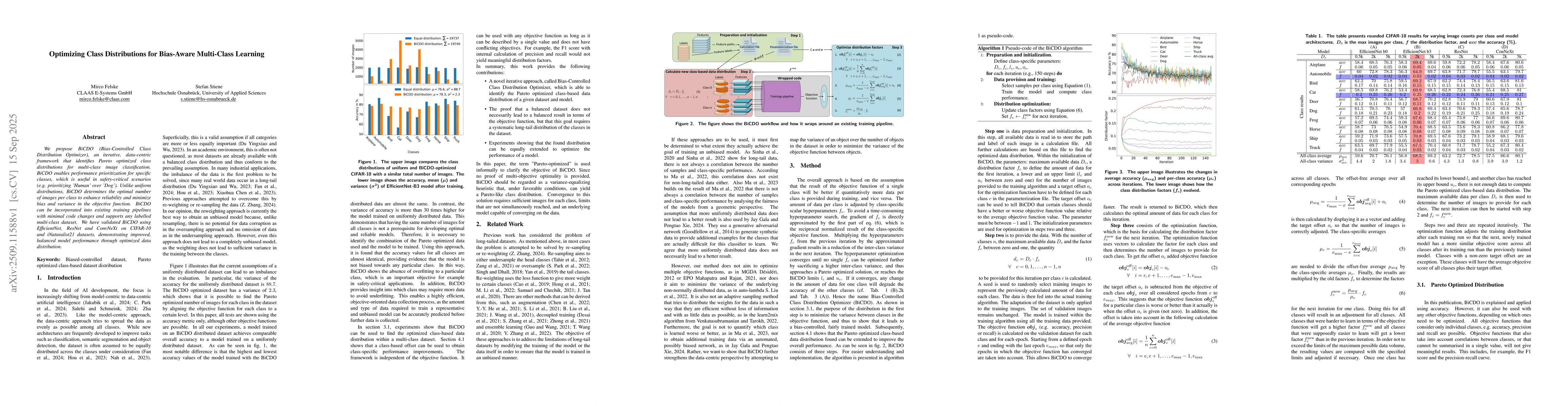 We propose BiCDO (Bias-Controlled Class Distribution Optimizer), an iterative, data-centric framework that identifies Pareto optimized class distributions for multi-class image classification. BiCDO enables performance prioritization for specific classes, which is useful in safety-critical scenarios (e.g. prioritizing 'Human' over 'Dog'). Unlike uniform distributions, BiCDO determines the optimal number of images per class to enhance reliability and minimize bias and variance in the objective function. BiCDO can be incorporated into existing training pipelines with minimal code changes and supports any labelled multi-class dataset. We have validated BiCDO using EfficientNet, ResNet and ConvNeXt on CIFAR-10 and iNaturalist21 datasets, demonstrating improved, balanced model performance through optimized data distribution.