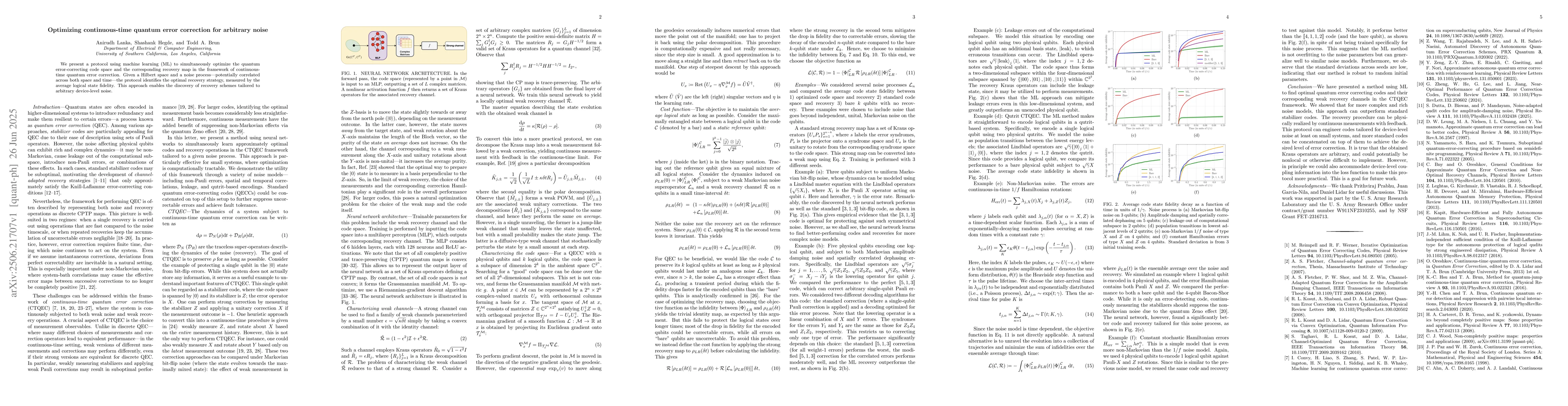 We present a protocol using machine learning (ML) to simultaneously optimize the quantum error-correcting code space and the corresponding recovery map in the framework of continuous-time quantum error correction. Given a Hilbert space and a noise process -- potentially correlated across both space and time -- the protocol identifies the optimal recovery strategy, measured by the average logical state fidelity. This approach enables the discovery of recovery schemes tailored to arbitrary device-level noise.