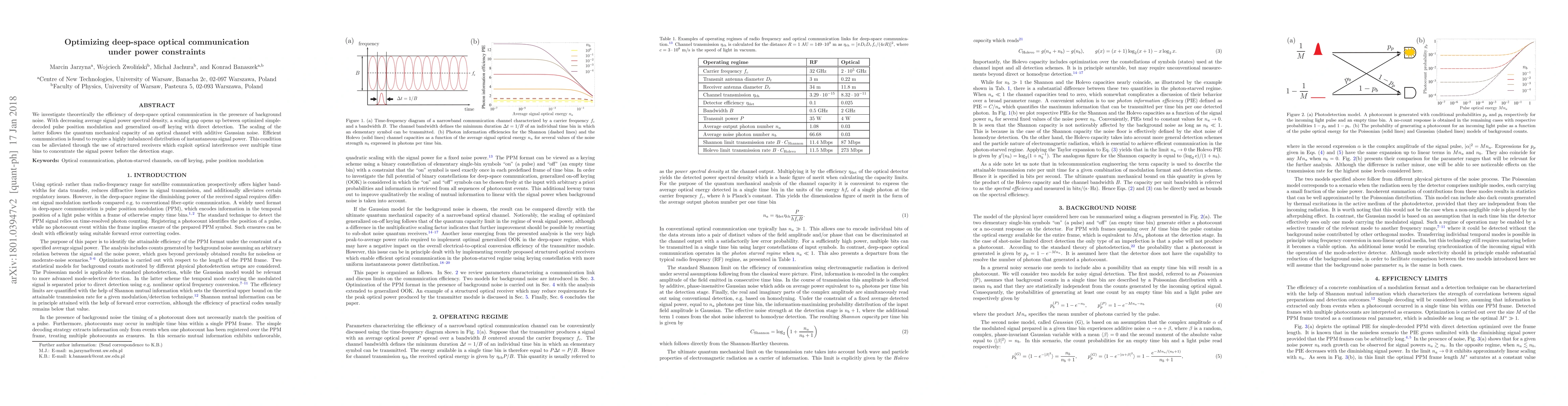 This paper explores the efficiency of deep-space optical communication under power constraints, revealing that optimized simple-decoded pulse position modulation and generalized on-off keying differ in their performance scaling. Structured receivers that exploit optical interference can mitigate the need for highly imbalanced signal power distribution.