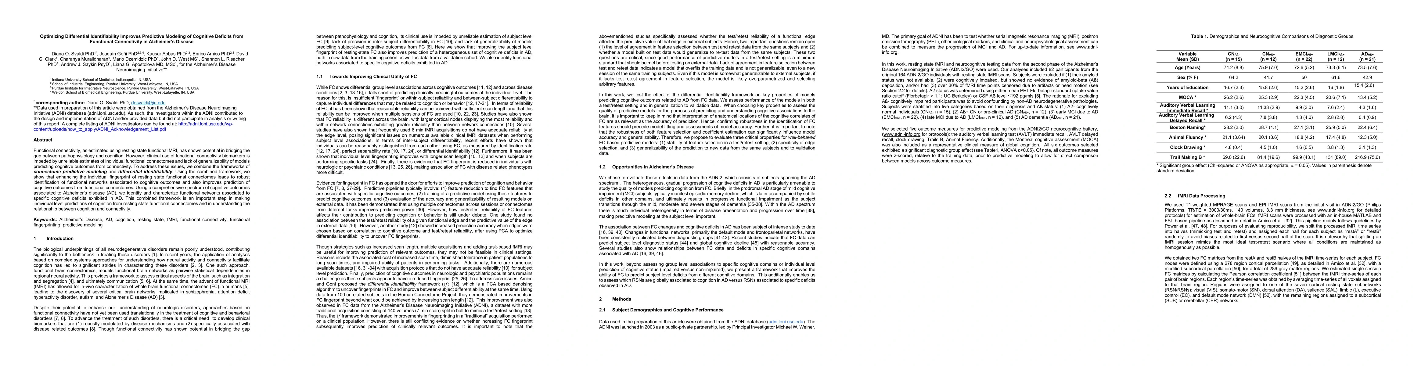 This paper combines connectome predictive modeling with differential identifiability to enhance the reliability of individual functional connectomes, leading to better identification of networks linked to cognitive deficits in Alzheimer's disease and improved predictions of cognitive outcomes from these connectomes. This approach advances the potential for personalized cognitive assessments based on resting-state fMRI.
