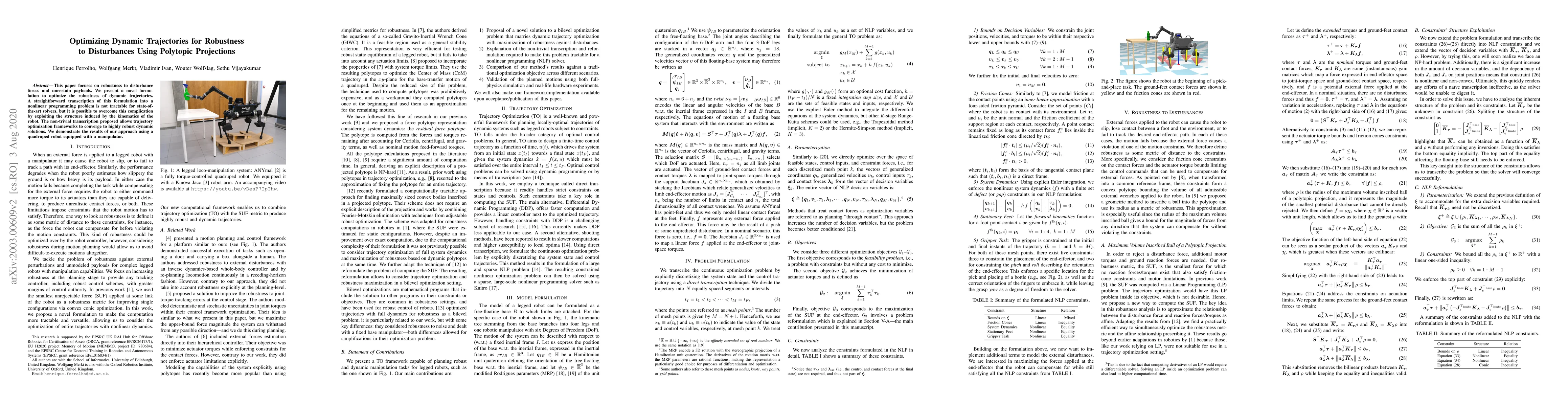 Researchers developed a new method to optimize robotic trajectories for robustness against disturbances, using polytopic projections. The approach enables highly robust dynamic solutions, demonstrated with a quadruped robot equipped with a manipulator.