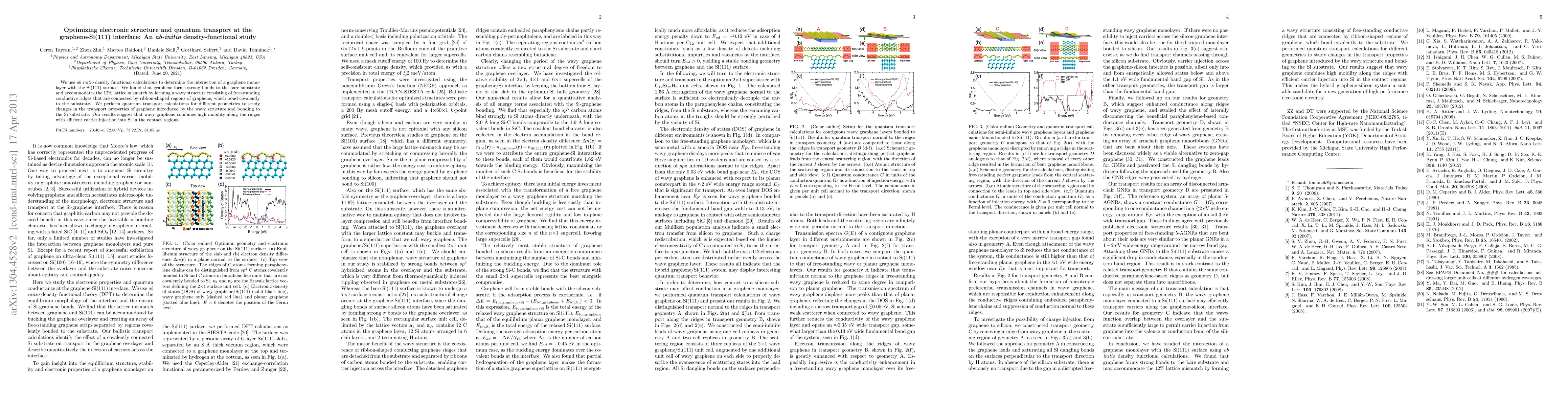 This study uses ab initio density functional theory to investigate the interaction between graphene and Si(111) surface, revealing a wavy conductive ridge structure that accommodates lattice mismatch. Quantum transport calculations show that this structure maintains high mobility and efficient carrier injection into silicon.