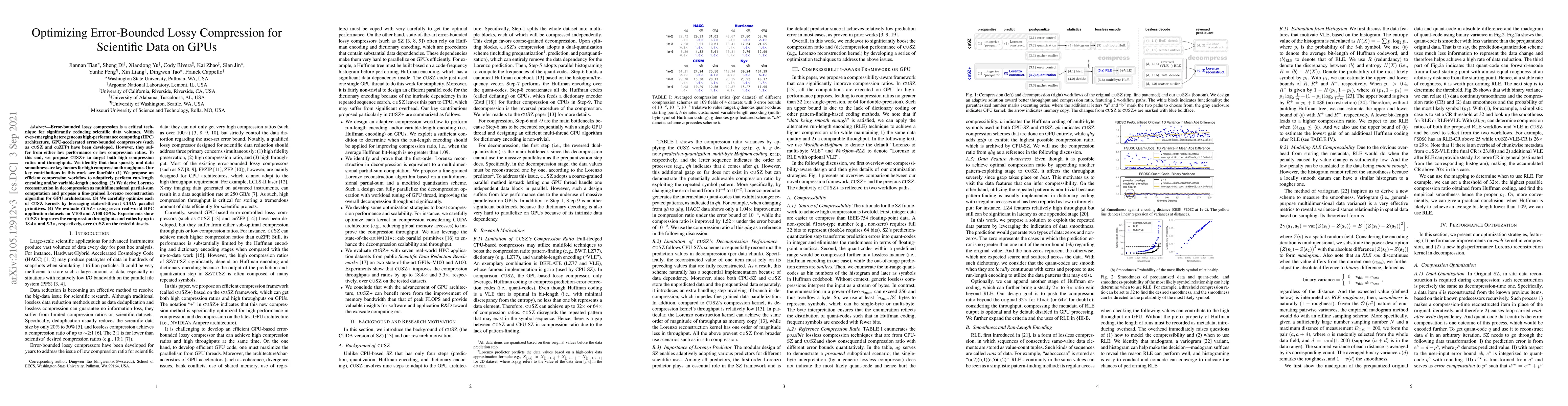 Jiannan Tian, Dingwen Tao, Franck Cappello et al.