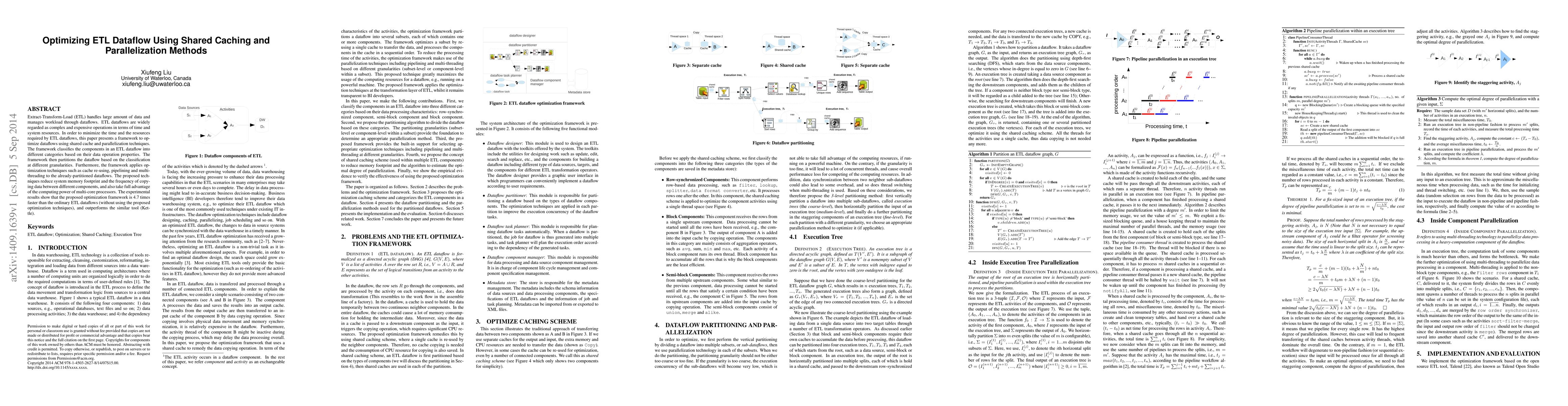 This paper proposes a framework to optimize ETL dataflows using shared caching and parallelization techniques, which classifies ETL components, partitions dataflows, and applies optimizations like cache re-using and multi-threading, resulting in a 4.7 times faster performance compared to traditional methods.