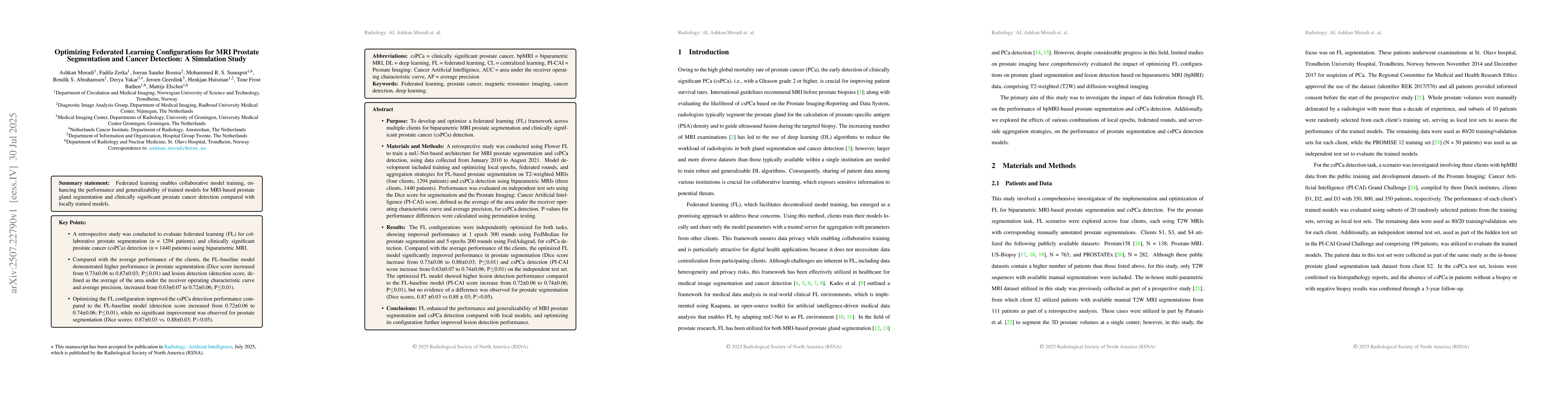 This study optimized a federated learning framework for prostate MRI segmentation and cancer detection, enhancing model performance and generalizability compared to local models. The optimized configurations improved lesion detection, but no significant difference was found for segmentation.