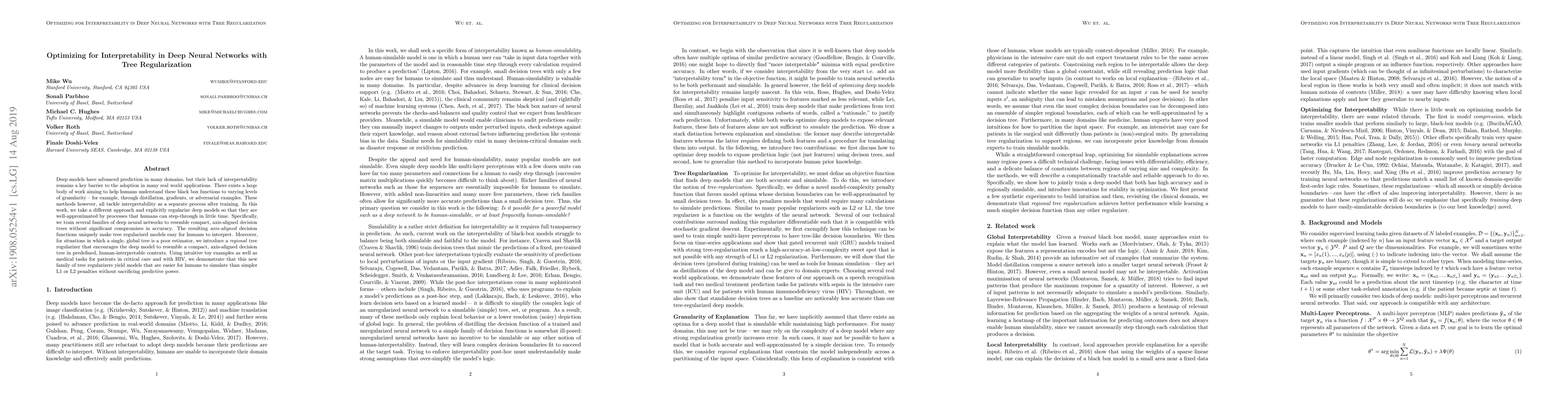 Deep models have advanced prediction in many domains, but their lack of interpretability remains a key barrier to the adoption in many real world applications. There exists a large body of work aiming to help humans understand these black box functions to varying levels of granularity -- for example, through distillation, gradients, or adversarial examples. These methods however, all tackle interpretability as a separate process after training. In this work, we take a different approach and explicitly regularize deep models so that they are well-approximated by processes that humans can step-through in little time. Specifically, we train several families of deep neural networks to resemble compact, axis-aligned decision trees without significant compromises in accuracy. The resulting axis-aligned decision functions uniquely make tree regularized models easy for humans to interpret. Moreover, for situations in which a single, global tree is a poor estimator, we introduce a regional tree regularizer that encourages the deep model to resemble a compact, axis-aligned decision tree in predefined, human-interpretable contexts. Using intuitive toy examples as well as medical tasks for patients in critical care and with HIV, we demonstrate that this new family of tree regularizers yield models that are easier for humans to simulate than simpler L1 or L2 penalties without sacrificing predictive power.