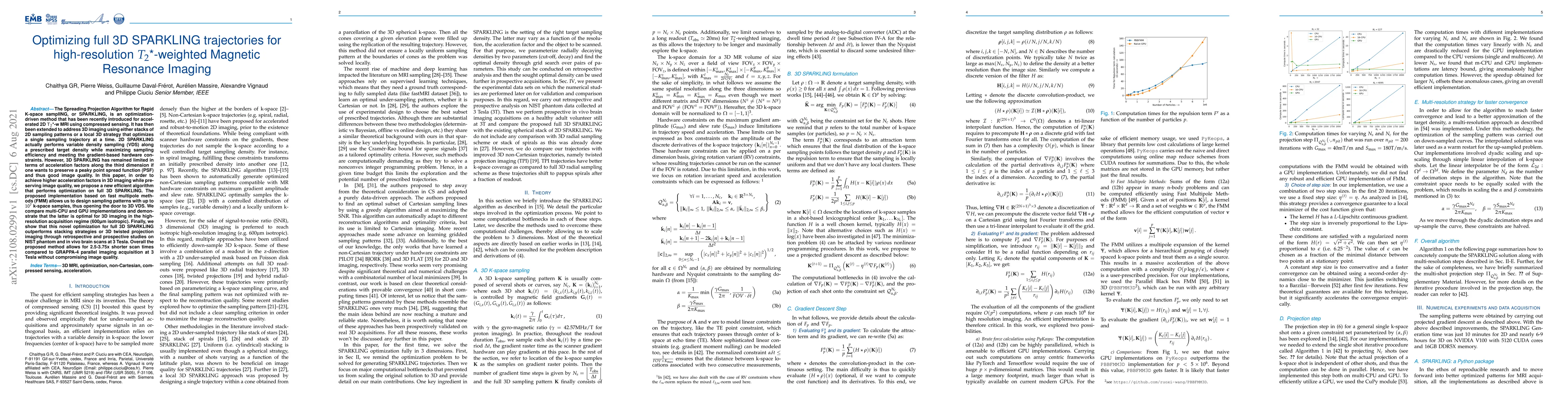 This paper proposes an optimized full 3D version of the SPARKLING algorithm for high-resolution T2*-weighted MRI, utilizing fast multipole methods to enable variable density sampling with up to 10^7 k-space samples. The GPU implementation is shown to be optimal for high-resolution 3D imaging, achieving significantly shorter scan times without compromising image quality compared to traditional methods.