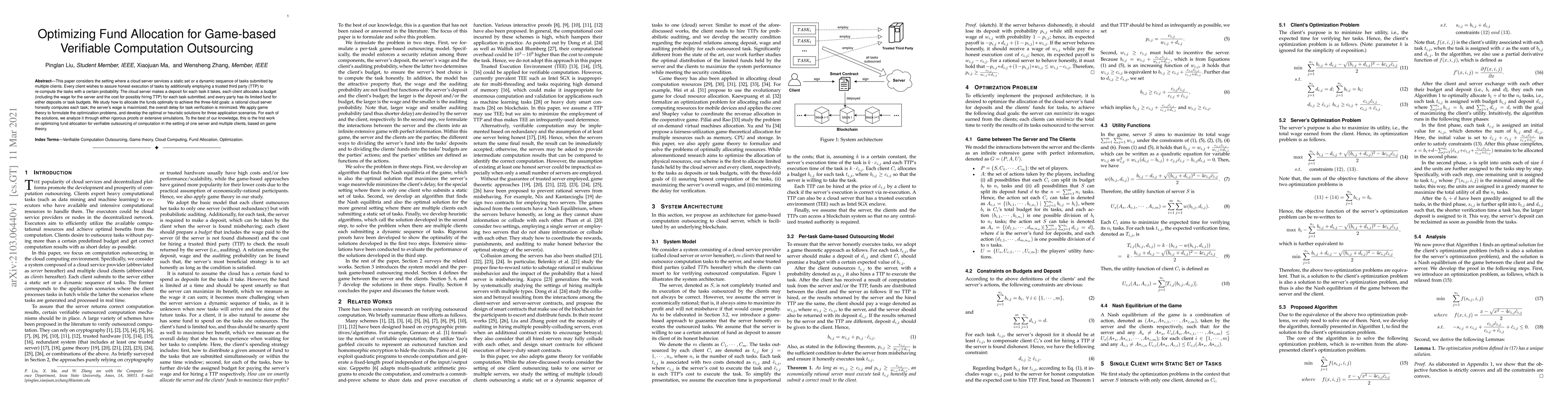 This paper optimizes fund allocation for a cloud server to minimize delay in verifying tasks while maximizing its wage, using game theory to balance the interests of multiple clients and ensuring honest computation.