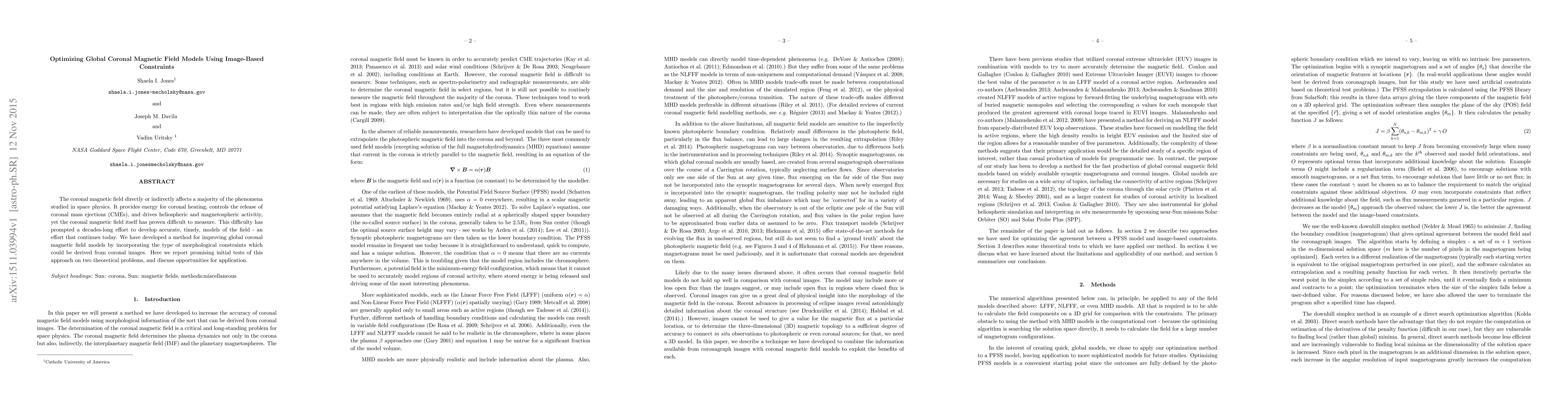 The coronal magnetic field directly or indirectly affects a majority of the phenomena studied in space physics. It provides energy for coronal heating, controls the release of coronal mass ejections (CMEs), and drives heliospheric and magnetospheric activity, yet the coronal magnetic field itself has proven difficult to measure. This difficulty has prompted a decades-long effort to develop accurate, timely, models of the field - an effort that continues today. We have developed a method for improving global coronal magnetic field models by incorporating the type of morphological constraints which could be derived from coronal images. Here we report promising initial tests of this approach on two theoretical problems, and discuss opportunities for application.