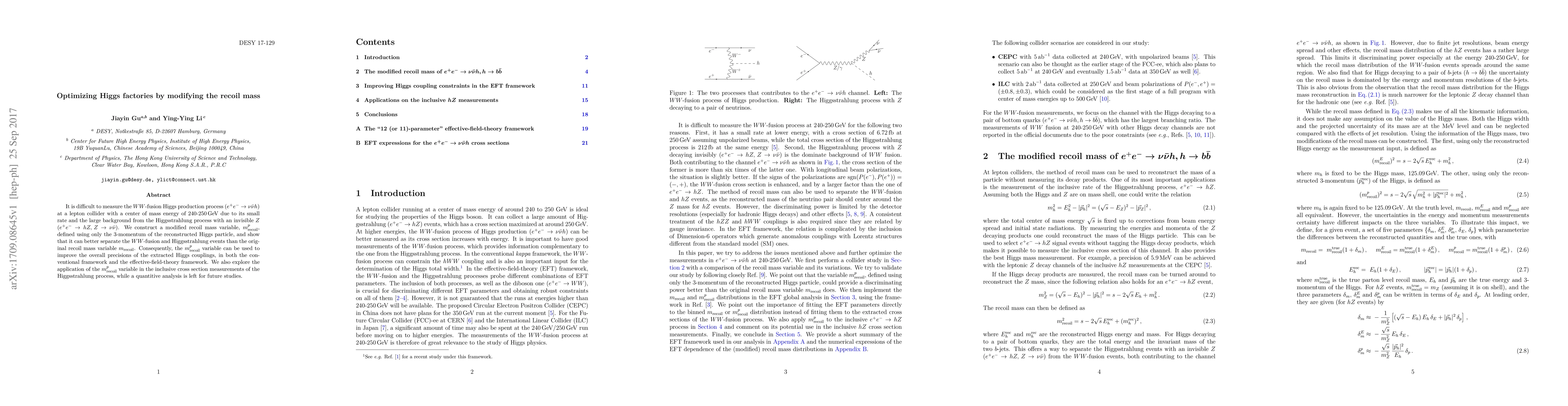 It is difficult to measure the $WW$-fusion Higgs production process ($e^+e^- \to \nu \bar{\nu} h$) at a lepton collider with a center of mass energy of 240-250 GeV due to its small rate and the large background from the Higgsstrahlung process with an invisible $Z$ ($e^+e^- \to hZ,\,Z\to \nu\bar{\nu}$). We construct a modified recoil mass variable, $m^p_{\rm recoil}$, defined using only the 3-momentum of the reconstructed Higgs particle, and show that it can better separate the $WW$-fusion and Higgsstrahlung events than the original recoil mass variable $m_{\rm recoil}$. Consequently, the $m^p_{\rm recoil}$ variable can be used to improve the overall precisions of the extracted Higgs couplings, in both the conventional framework and the effective-field-theory framework. We also explore the application of the $m^p_{\rm recoil}$ variable in the inclusive cross section measurements of the Higgsstrahlung process, while a quantitive analysis is left for future studies.