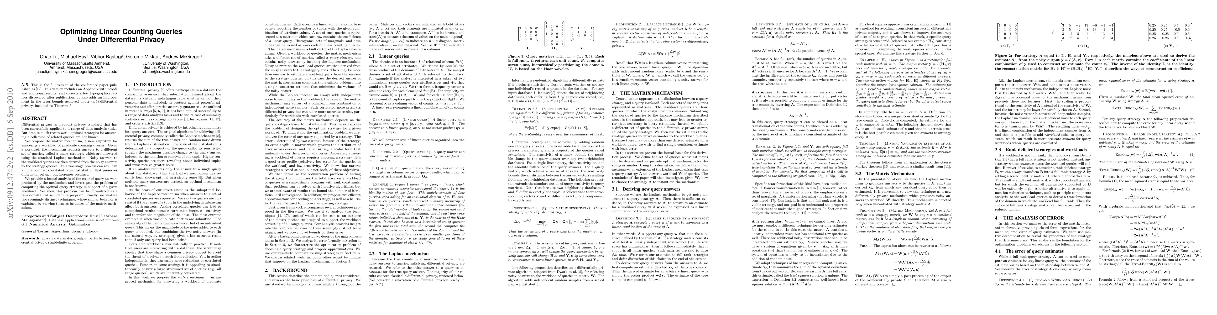 This paper proposes a framework for optimizing histogram queries under differential privacy, focusing on deriving optimal strategy queries that minimize error while supporting a range of correlated queries. The authors introduce a method to geometrically characterize query strategy error and provide solutions for finding the most effective strategies.