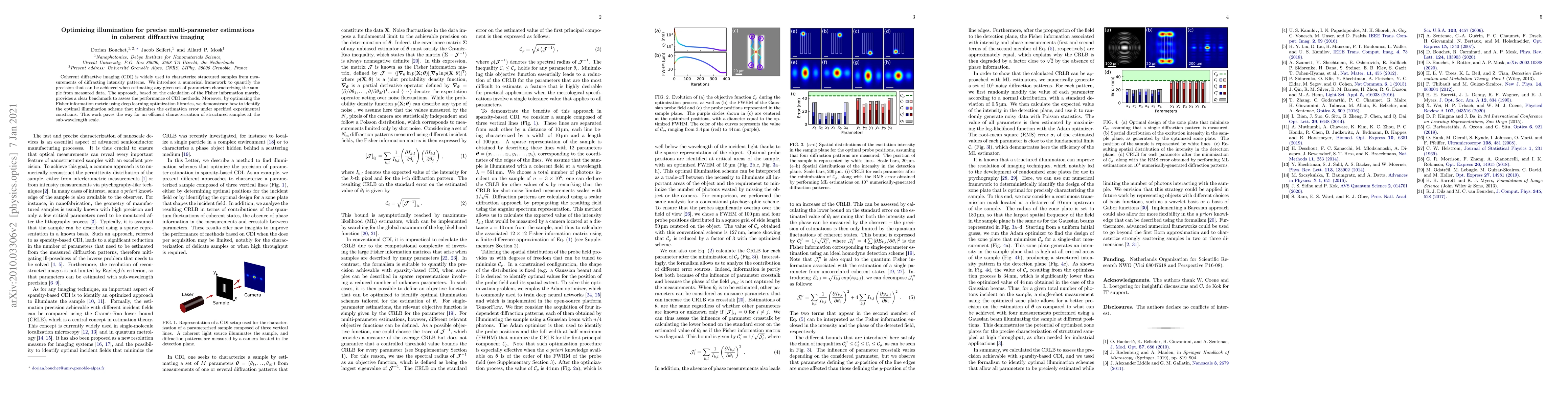 This paper presents a numerical framework based on the Fisher information matrix to quantify the precision of parameter estimations in coherent diffractive imaging (CDI). By optimizing the Fisher information metric with deep learning, the authors identify the optimal illumination scheme to minimize estimation errors, enhancing the characterization of structured samples at sub-wavelength scales.