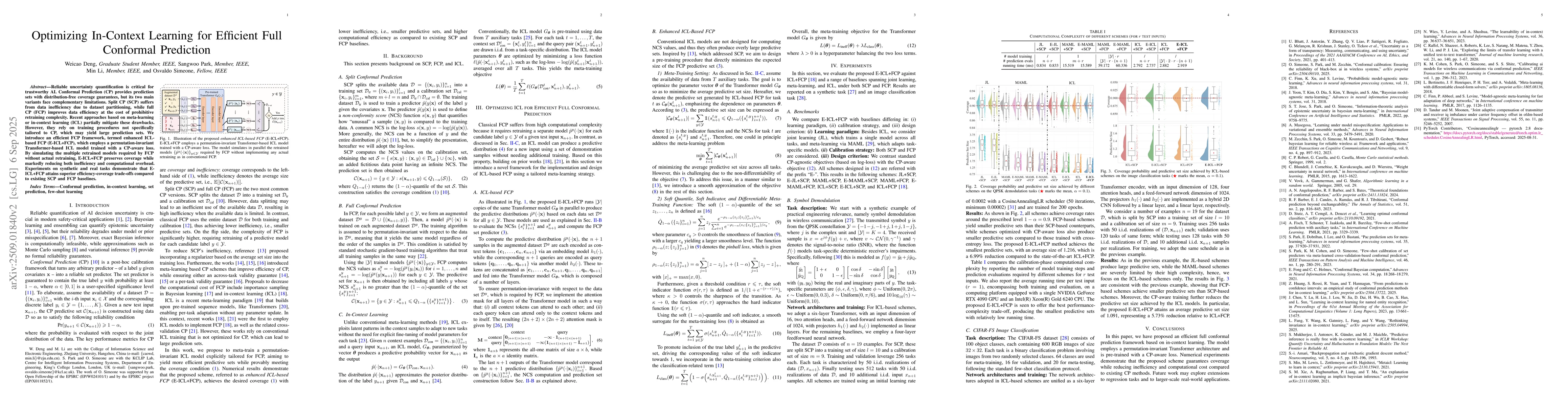 Reliable uncertainty quantification is critical for trustworthy AI. Conformal Prediction (CP) provides prediction sets with distribution-free coverage guarantees, but its two main variants face complementary limitations. Split CP (SCP) suffers from data inefficiency due to dataset partitioning, while full CP (FCP) improves data efficiency at the cost of prohibitive retraining complexity. Recent approaches based on meta-learning or in-context learning (ICL) partially mitigate these drawbacks. However, they rely on training procedures not specifically tailored to CP, which may yield large prediction sets. We introduce an efficient FCP framework, termed enhanced ICL-based FCP (E-ICL+FCP), which employs a permutation-invariant Transformer-based ICL model trained with a CP-aware loss. By simulating the multiple retrained models required by FCP without actual retraining, E-ICL+FCP preserves coverage while markedly reducing both inefficiency and computational overhead. Experiments on synthetic and real tasks demonstrate that E-ICL+FCP attains superior efficiency-coverage trade-offs compared to existing SCP and FCP baselines.